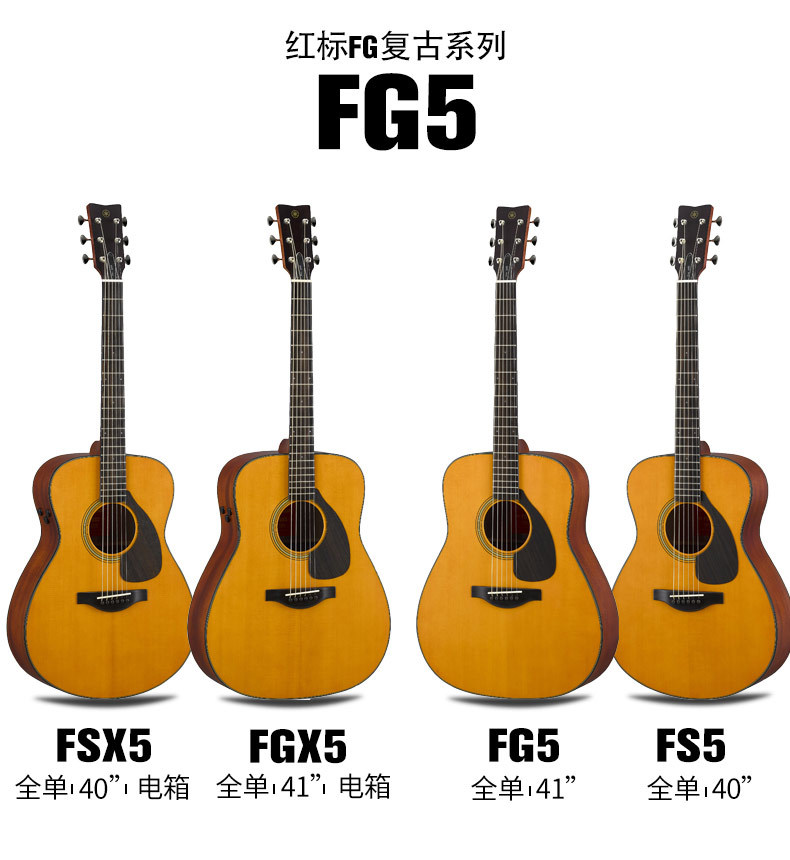 야마하 FG5 기타 FS5 풀 베니어 레드 라벨 FG3 FGX3 FGX5 닛산 나무 기타 전기 상자 40/41 인치스토어 가기