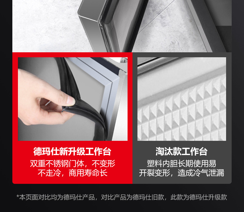 Demax 상업용 보관 작업대 냉동고 작업대 냉동고 주방 냉동고 이중 온도 신선 유지 작업 캐비닛