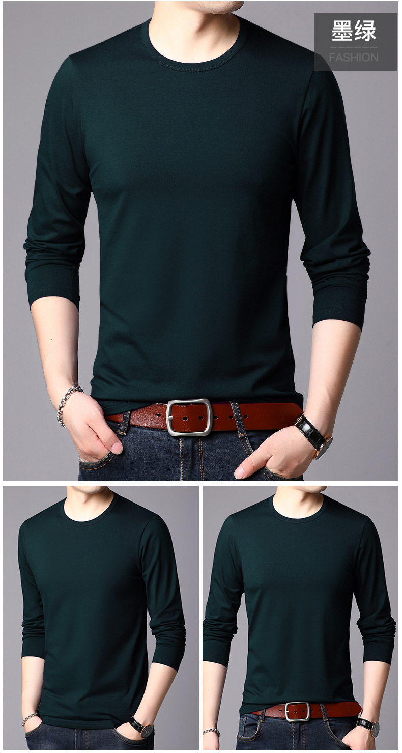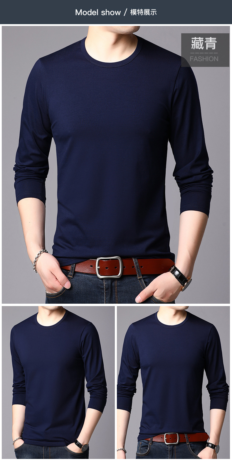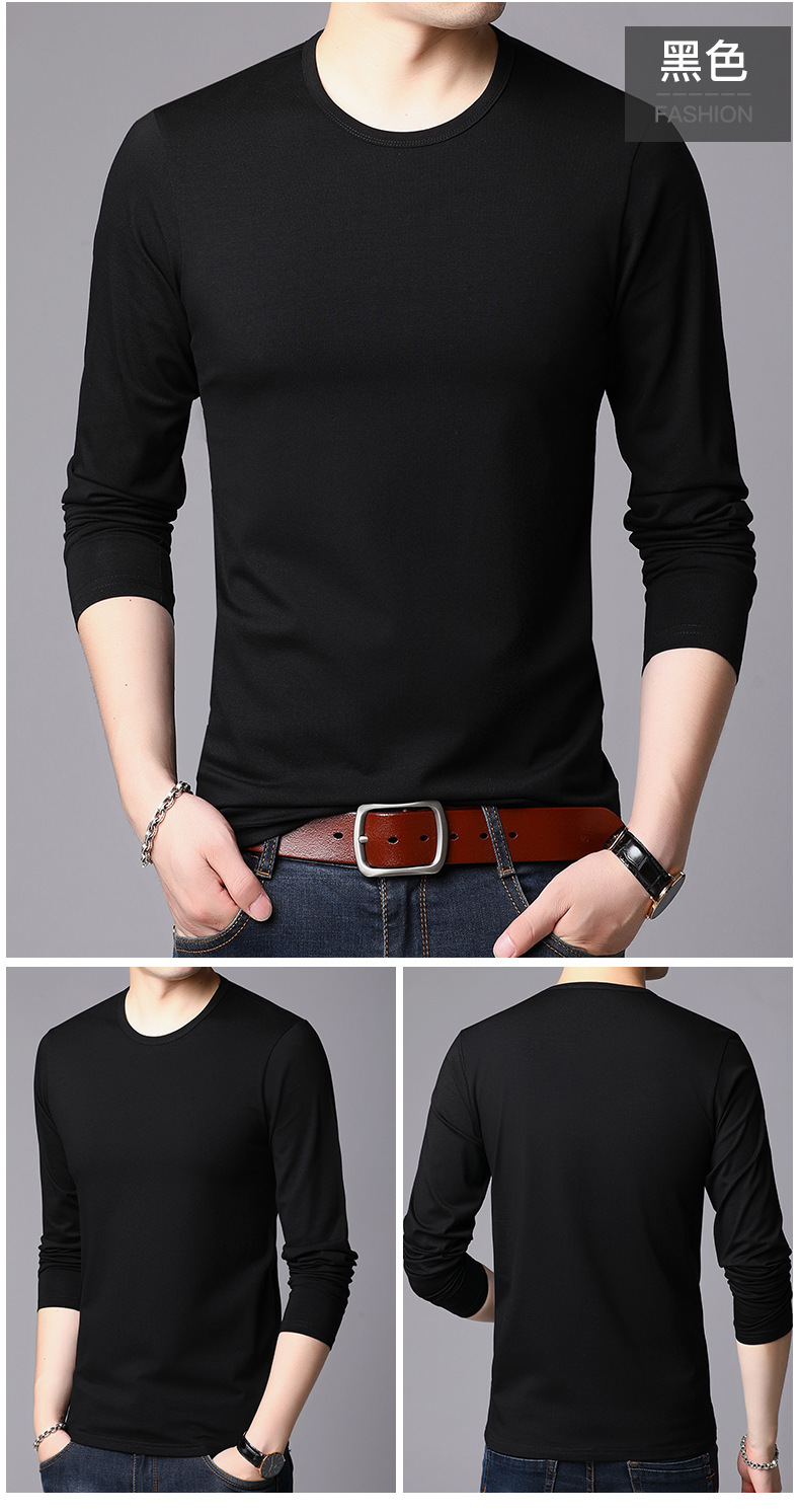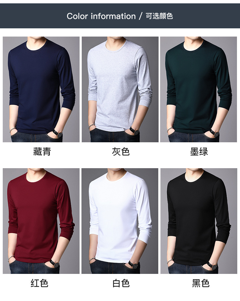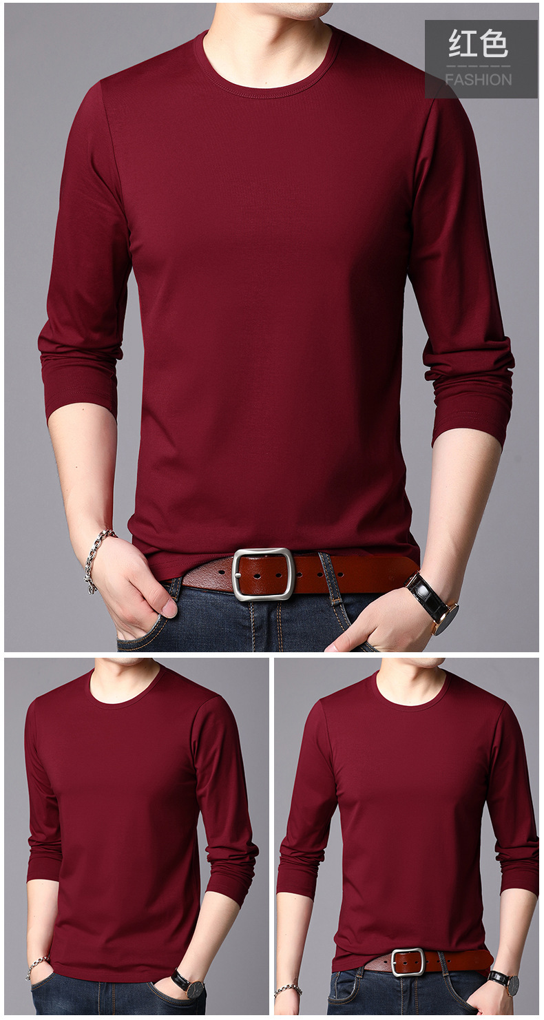 도매 남자 티셔츠 긴 소매 기본 셔츠 봄과 가을 얇은 탄성 라운드 넥 티셔츠 중년 플러스 사이즈 가을 티셔츠
