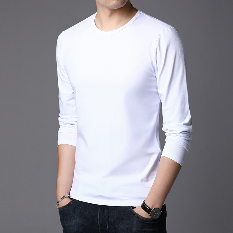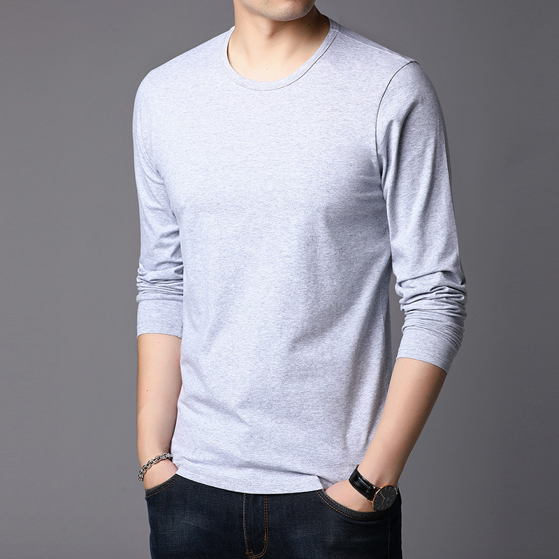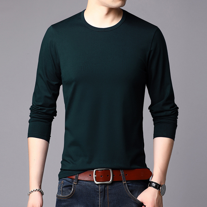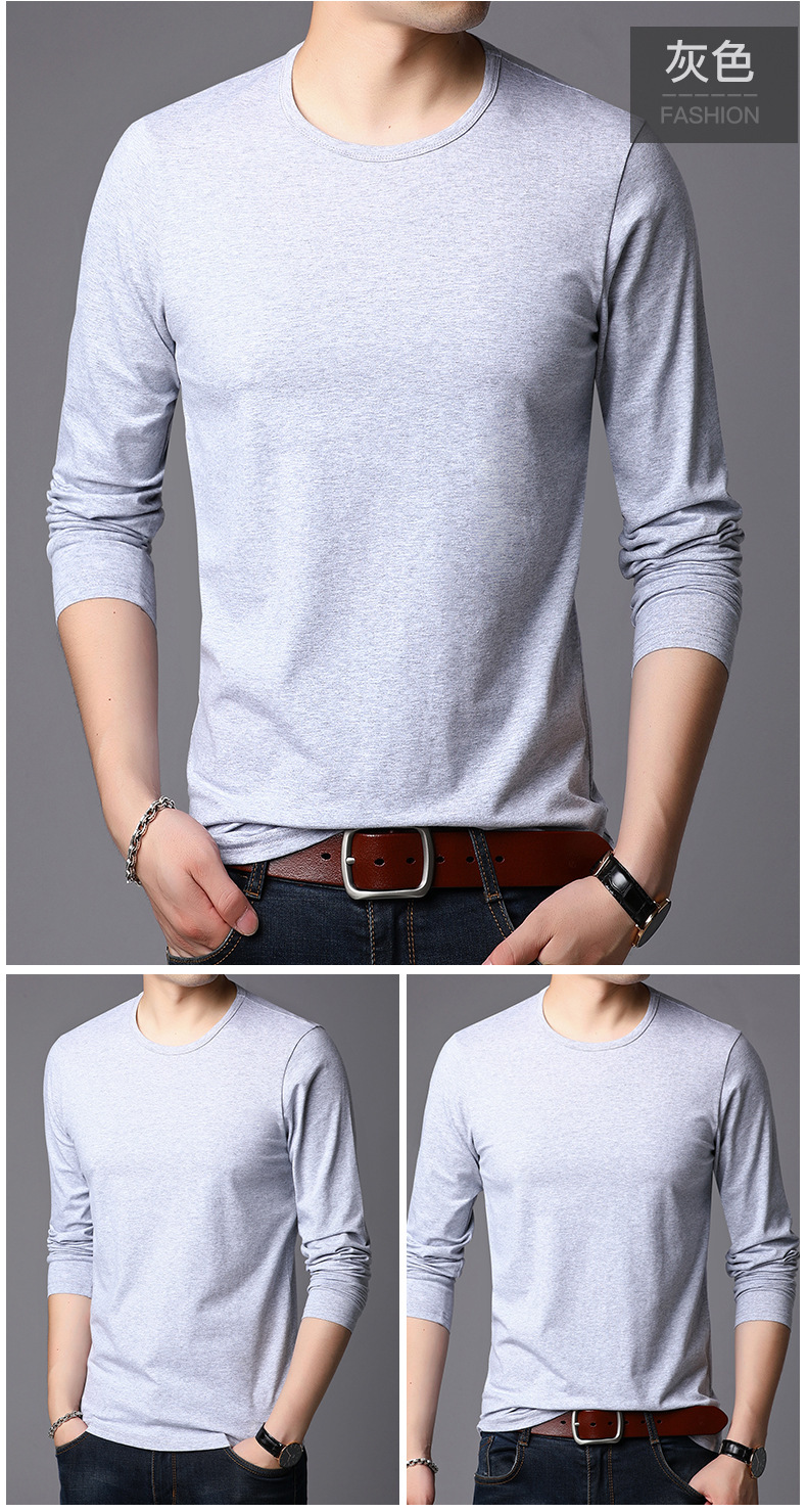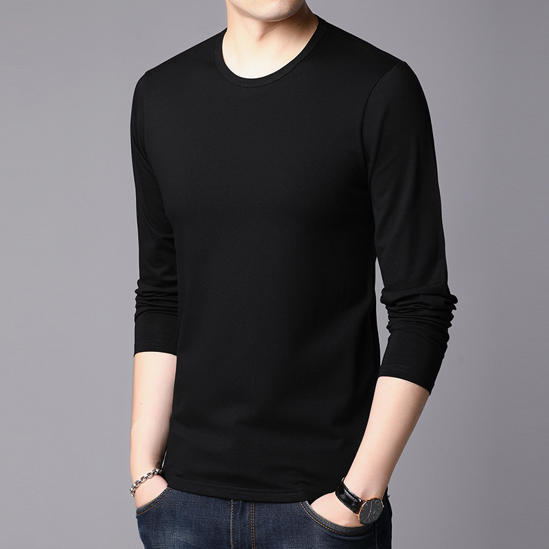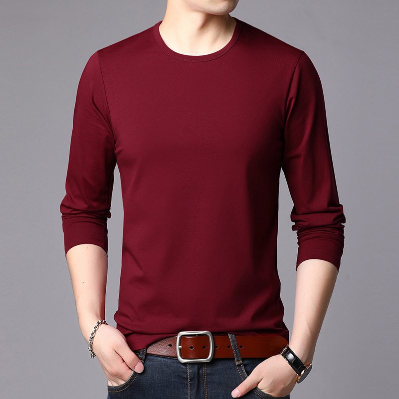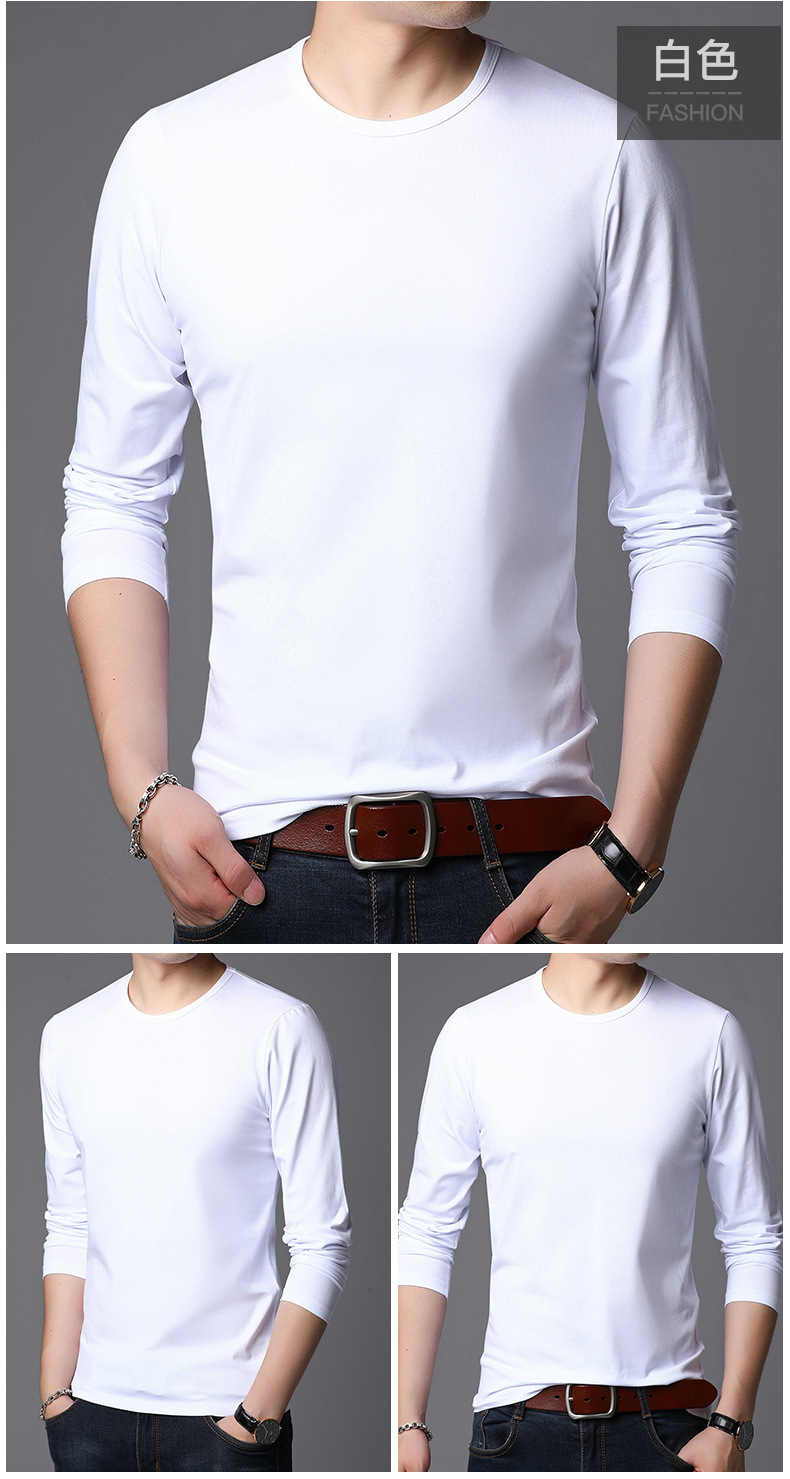 도매 남자 티셔츠 긴 소매 기본 셔츠 봄과 가을 얇은 탄성 라운드 넥 티셔츠 중년 플러스 사이즈 가을 티셔츠