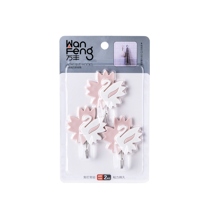 창조적 인 북유럽 스타일 후크 만화 패턴 백조 비둘기 돌고래 후크 금속 접착제 후크 3 세트