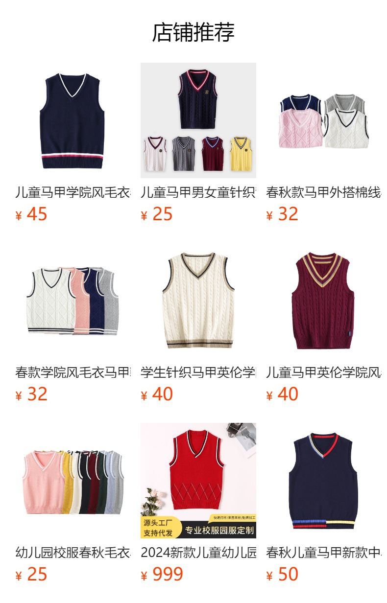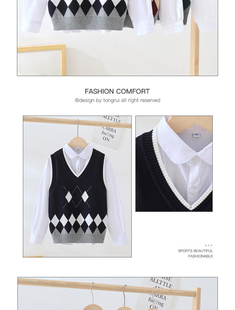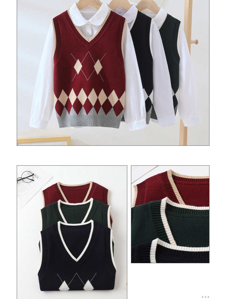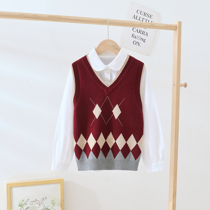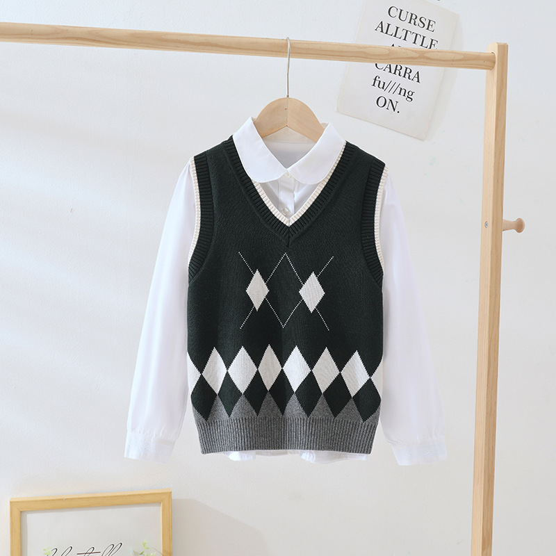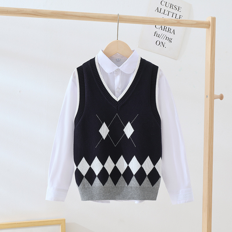 여자 조끼, 대학 스타일 민소매 면 스웨터, 큰 어린이 양복 조끼, 캐주얼 소년 조끼, 서양식 아동복스토어 가기