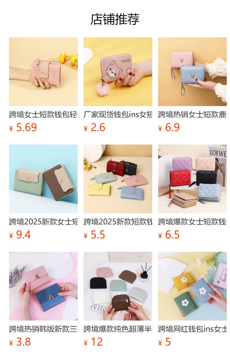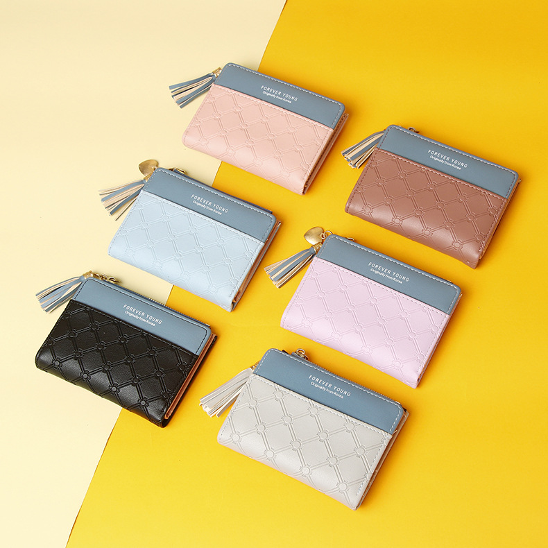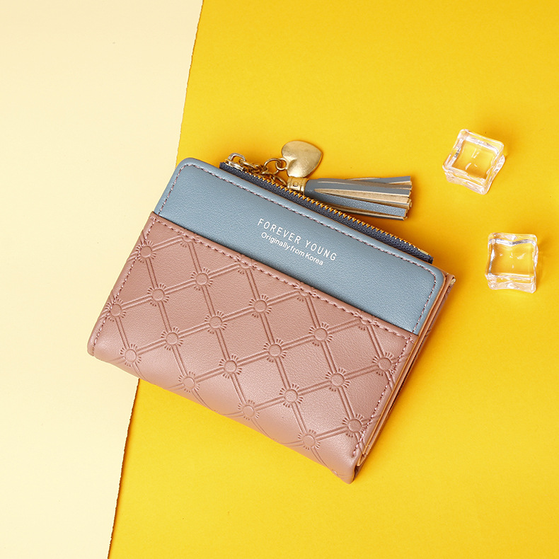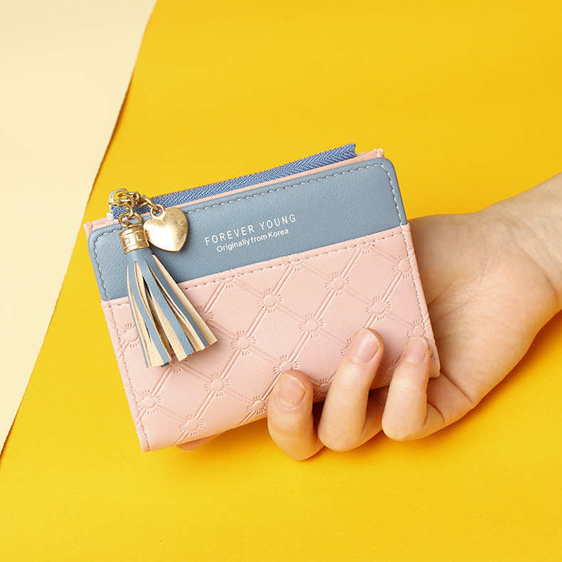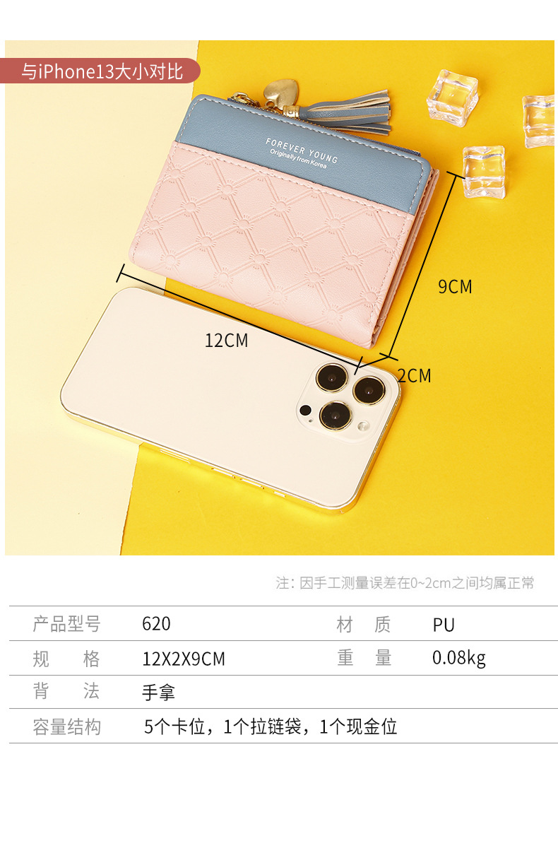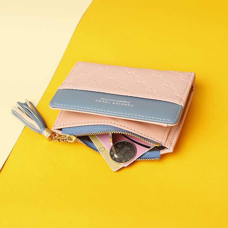 크로스보더 TEMU 인기 여성용 숏 지갑 한국 스타일 배색 심플 지갑 지퍼 동전 지갑 카드 지갑 도매스토어 가기