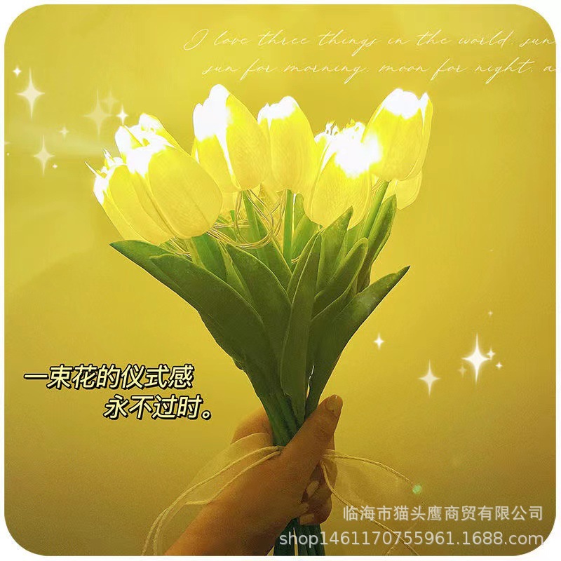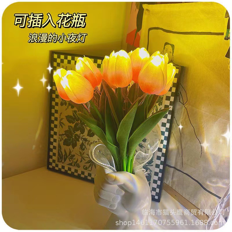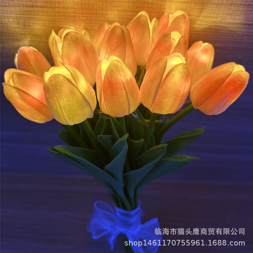 플래시 LED 조명이 있는 모조 발광 튤립 꽃다발 장식품, 인스타 감성 조화 선물, 사진 촬영용 꽃다발