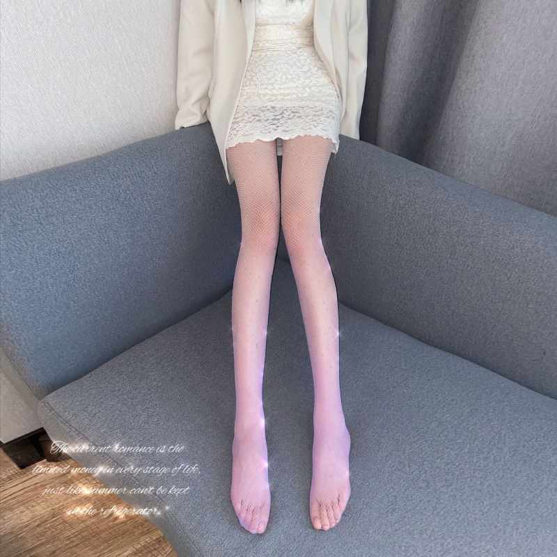 In 사이버 연예인 실크 스타킹 그라데이션 색상 변경 테니스 스타킹 여자 밤 상점 탄력 블랙 실크 여름 섹시한 낚시 그물 뜨거운 드릴링 팬티 스타킹