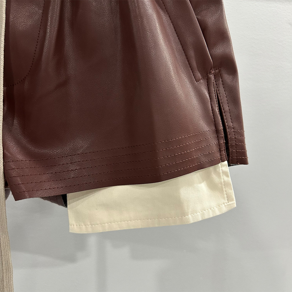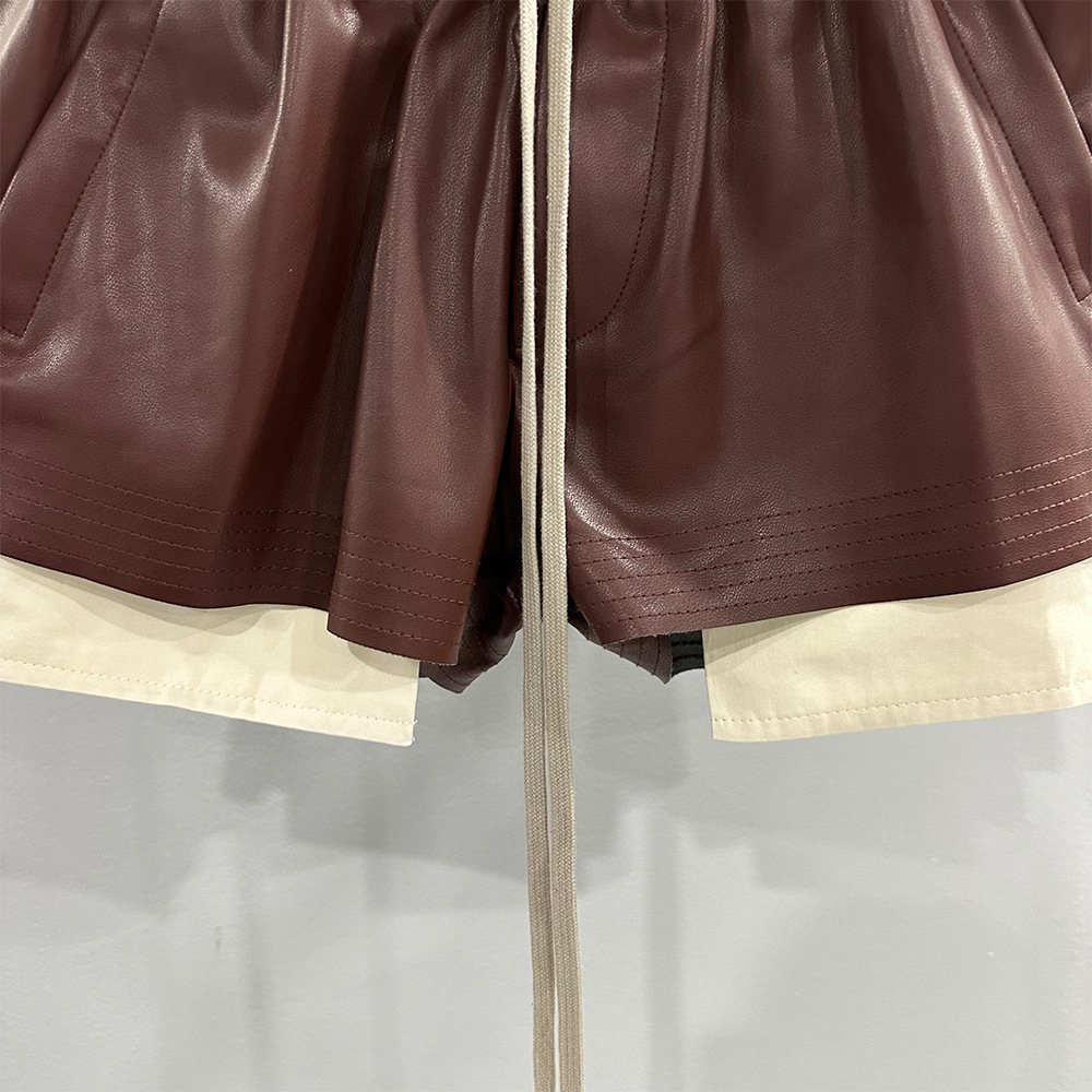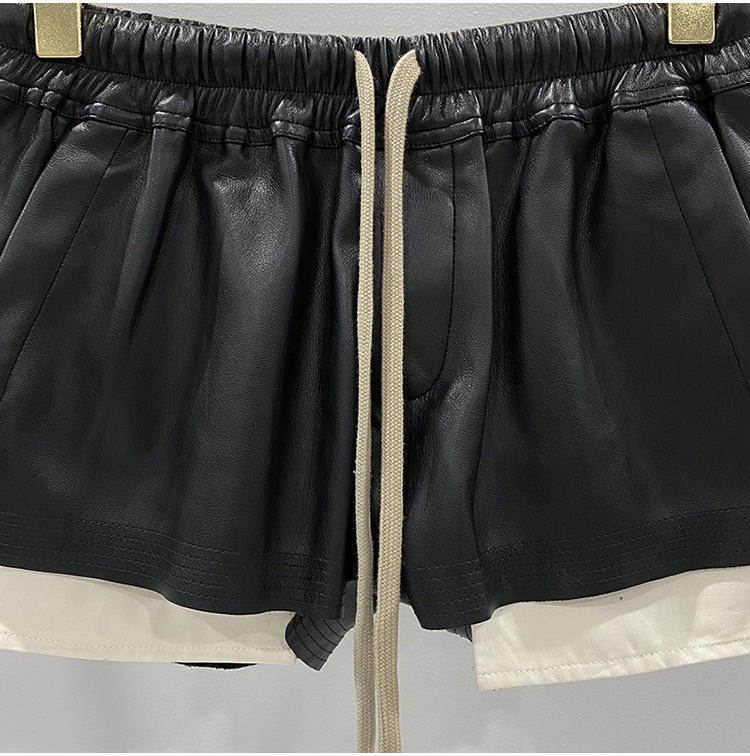 서브휴먼 여성용 | 여신 스타일 기본 PU 가죽 사각 포켓 편안하고 다용도로 활용 가능한 블랙 숏팬츠 트렌디 브랜드