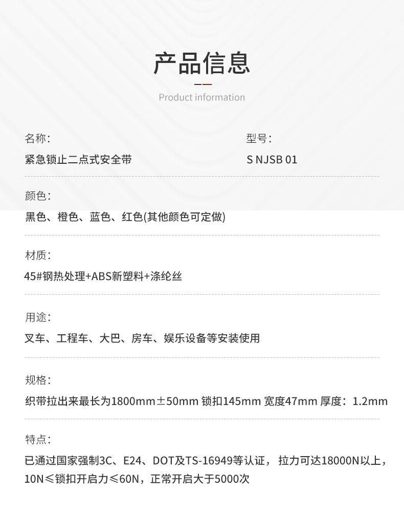 Saino 공장 도매 하이 퀄리티 지게차 안전 벨트 안전 벨트 자동 개폐식 벨트 경보