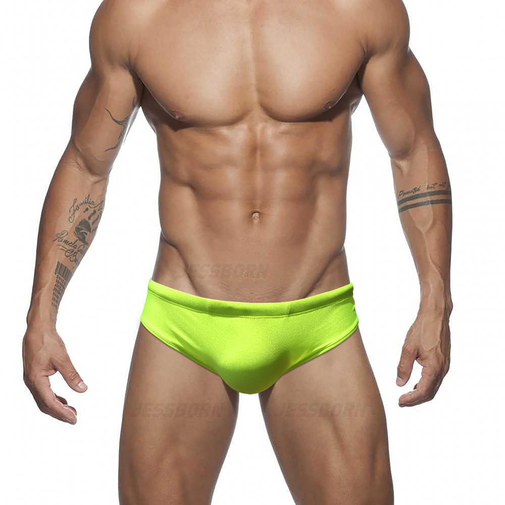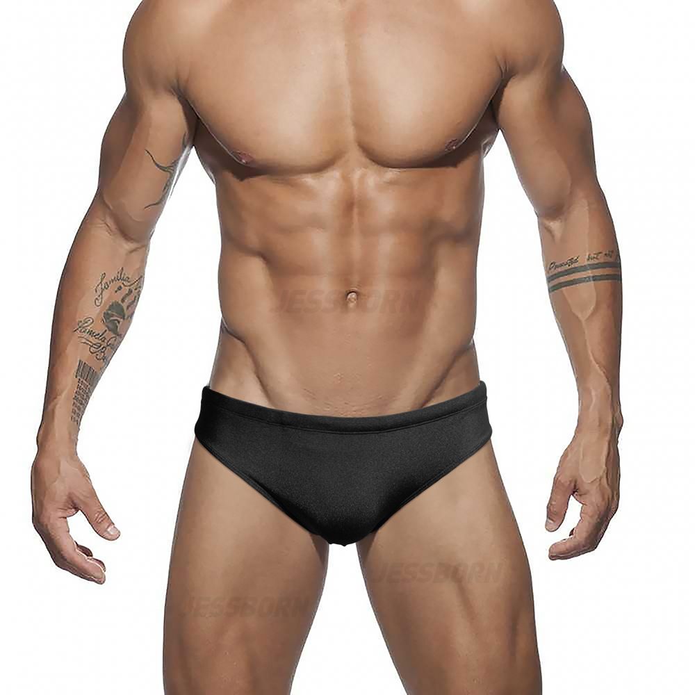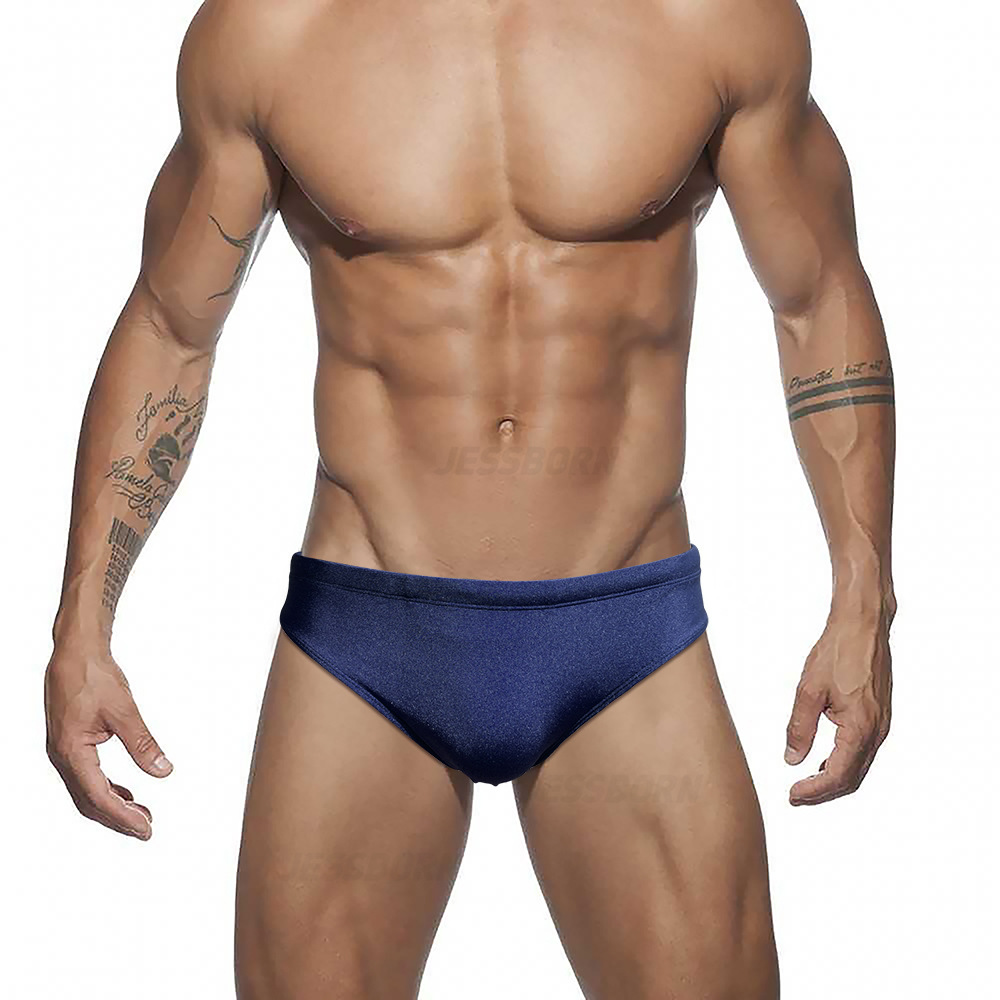 JESSBORN 단색 반짝이는 삼각형 남성용 수영 트렁크 섹시한 패션 낮은 허리 수영 트렁크 해변 해변 스파 수영복