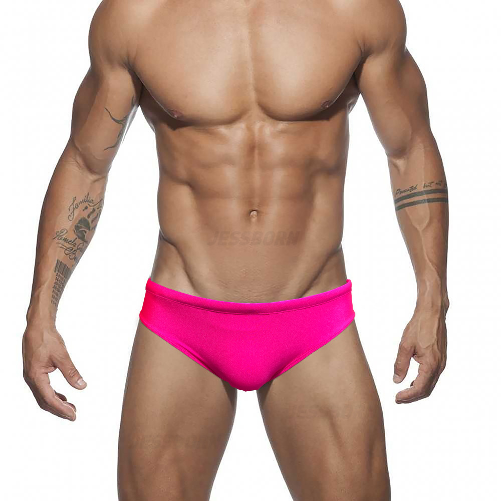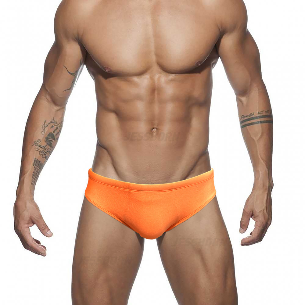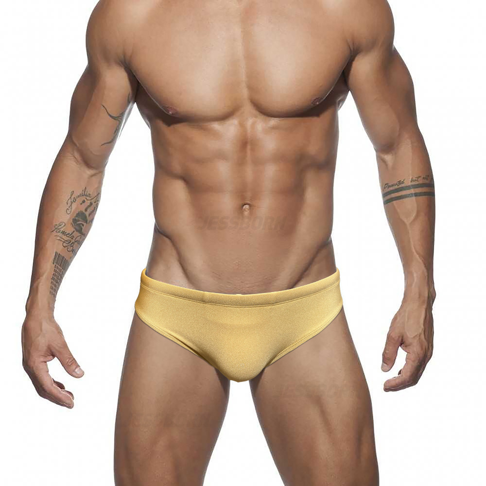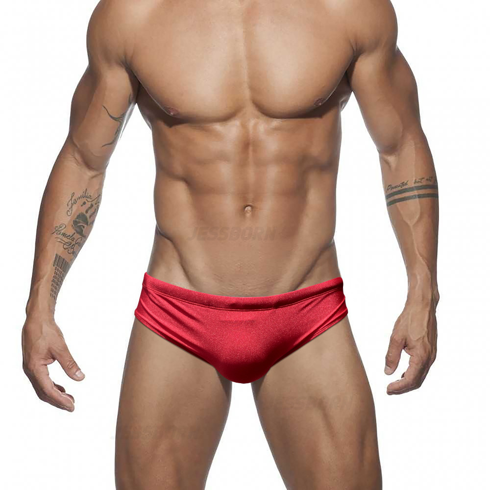 JESSBORN纯色闪亮三角男泳裤性感时尚低腰游泳裤海边沙滩温泉泳衣