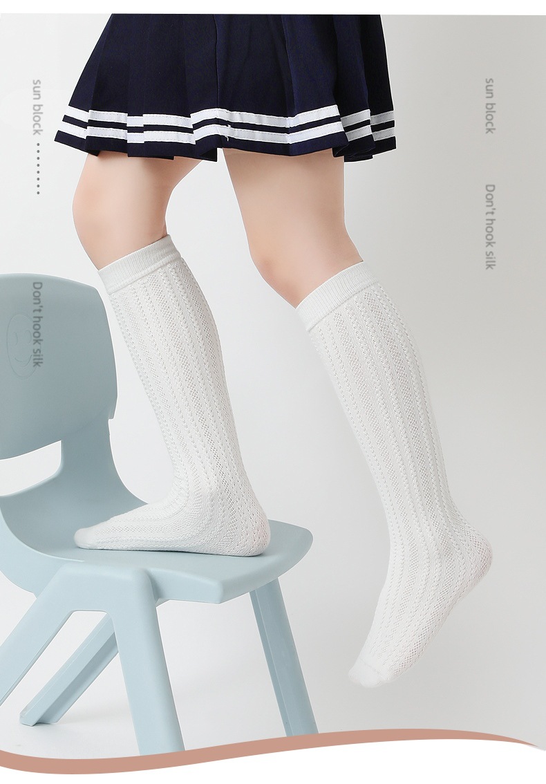 여아 스타킹 여름 얇은 면 여아 대형 어린이 아기 메쉬 통기성 흰색 공주 스타킹 높은 스타킹