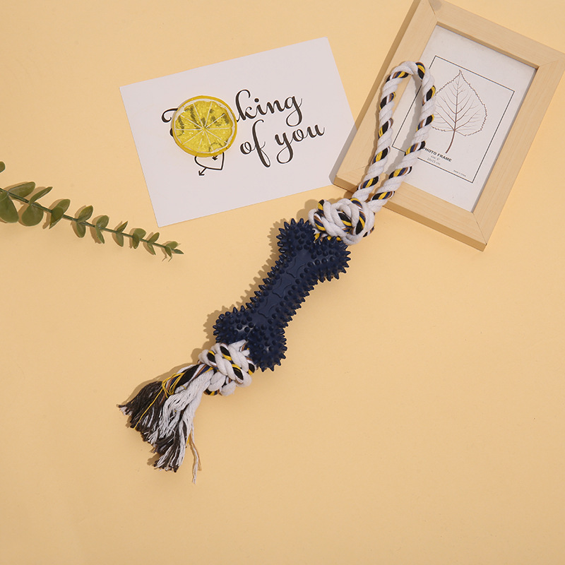 深蓝色骨头球手提绳 装箱数:144 装箱尺寸:45*30*40 单品尺寸:40*6.5 重量:83.5g