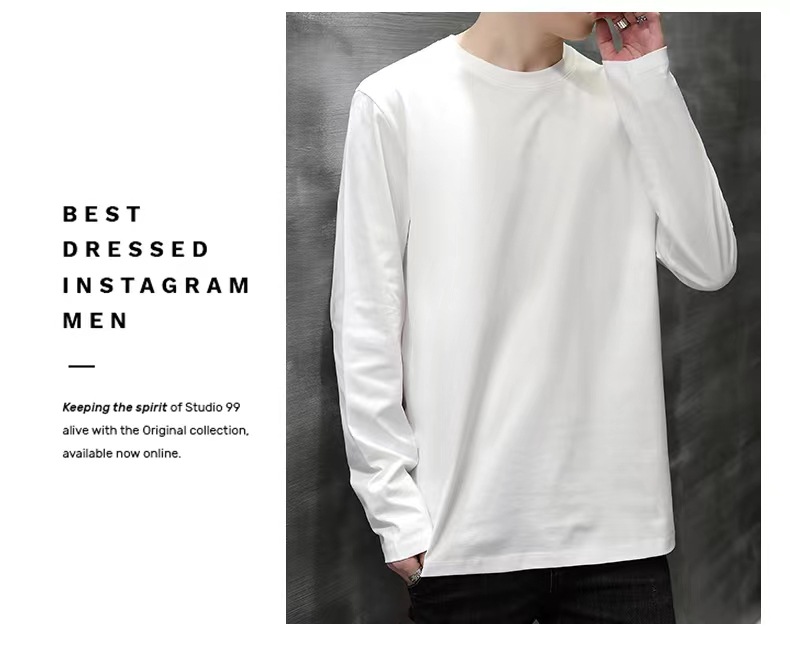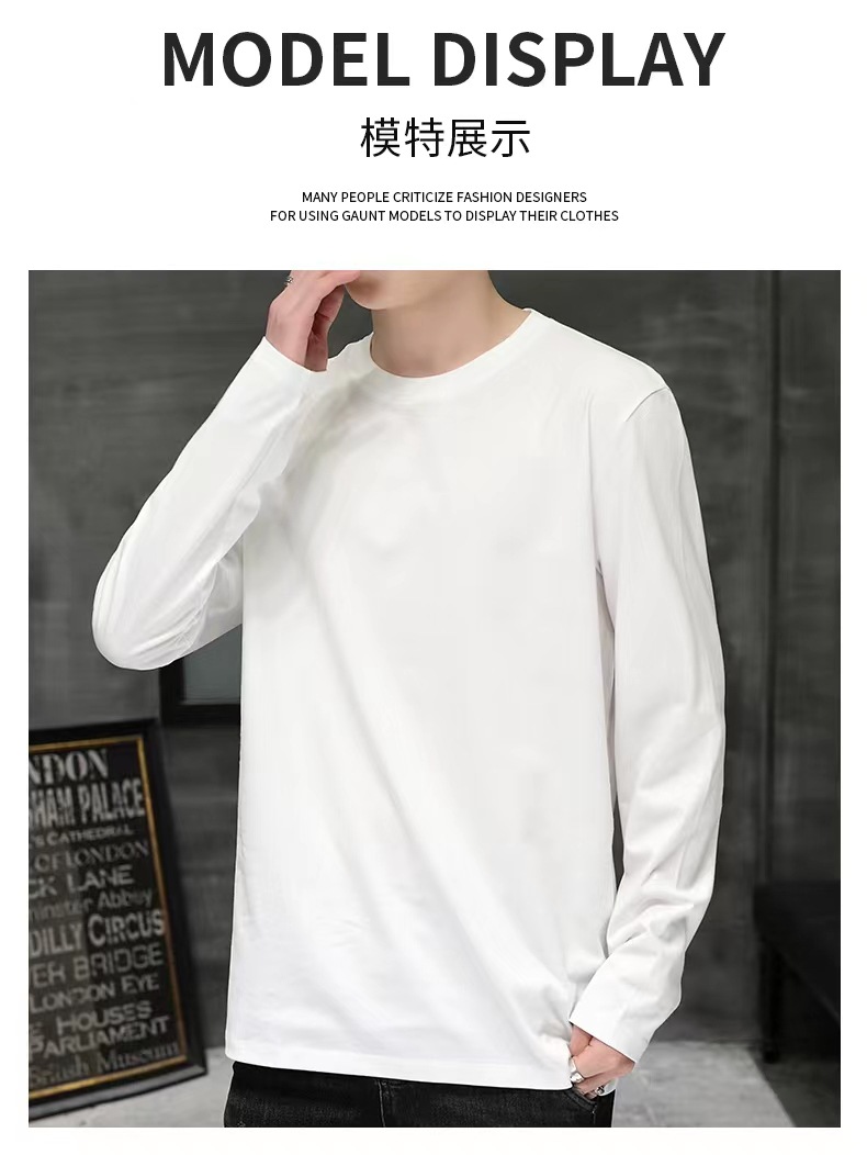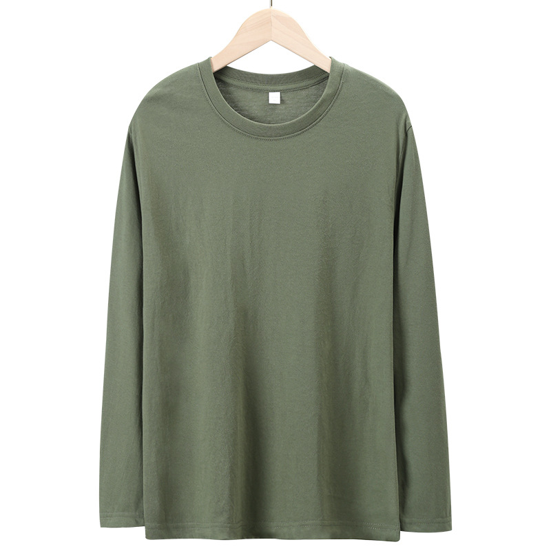 180 그램의 단색 빗질면 긴 소매 티셔츠가있는 남성과 여성 느슨한 캐주얼 스웨터 봄과 가을 바닥 셔츠 CVC 가을 의류스토어 가기