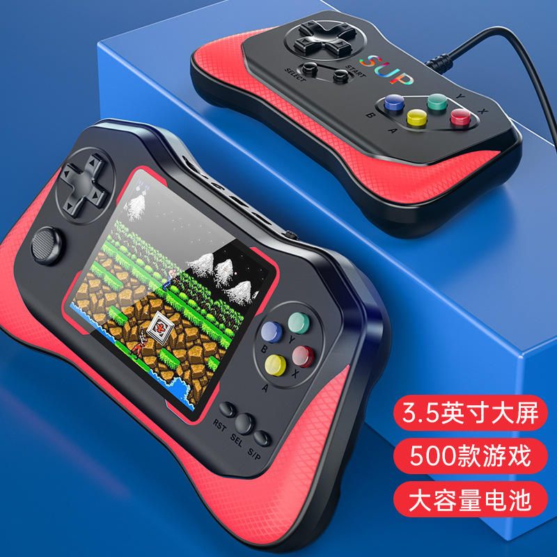 하나의 3.5 인치 HD 대형 화면 어린이 선물 Q12 핸드 헬드 게임기 레트로 빨강과 파랑 그리운 게임기 500