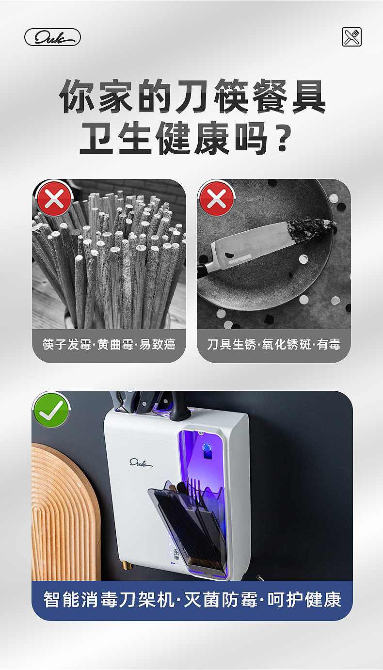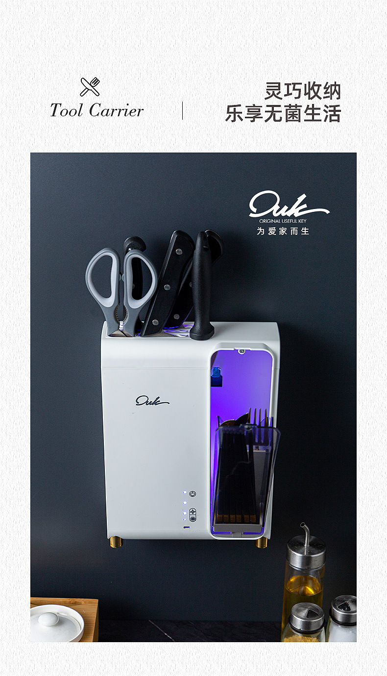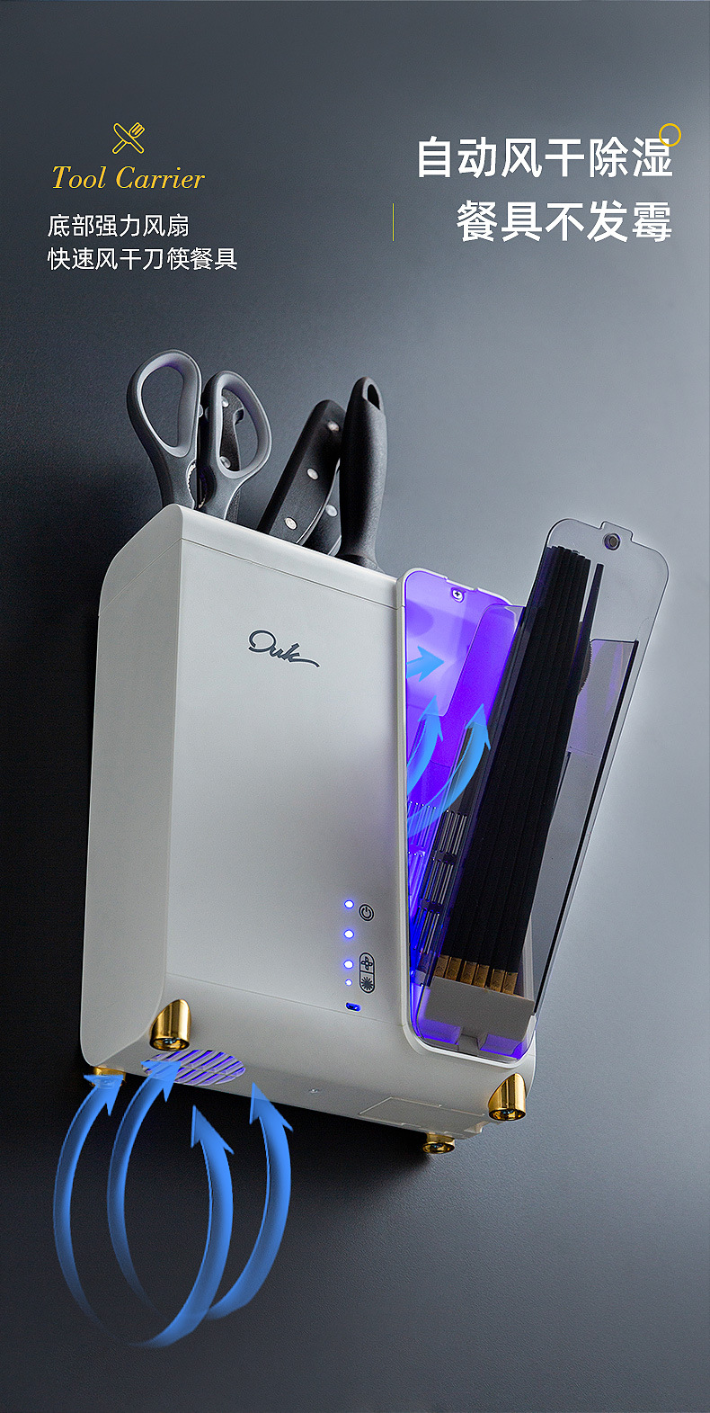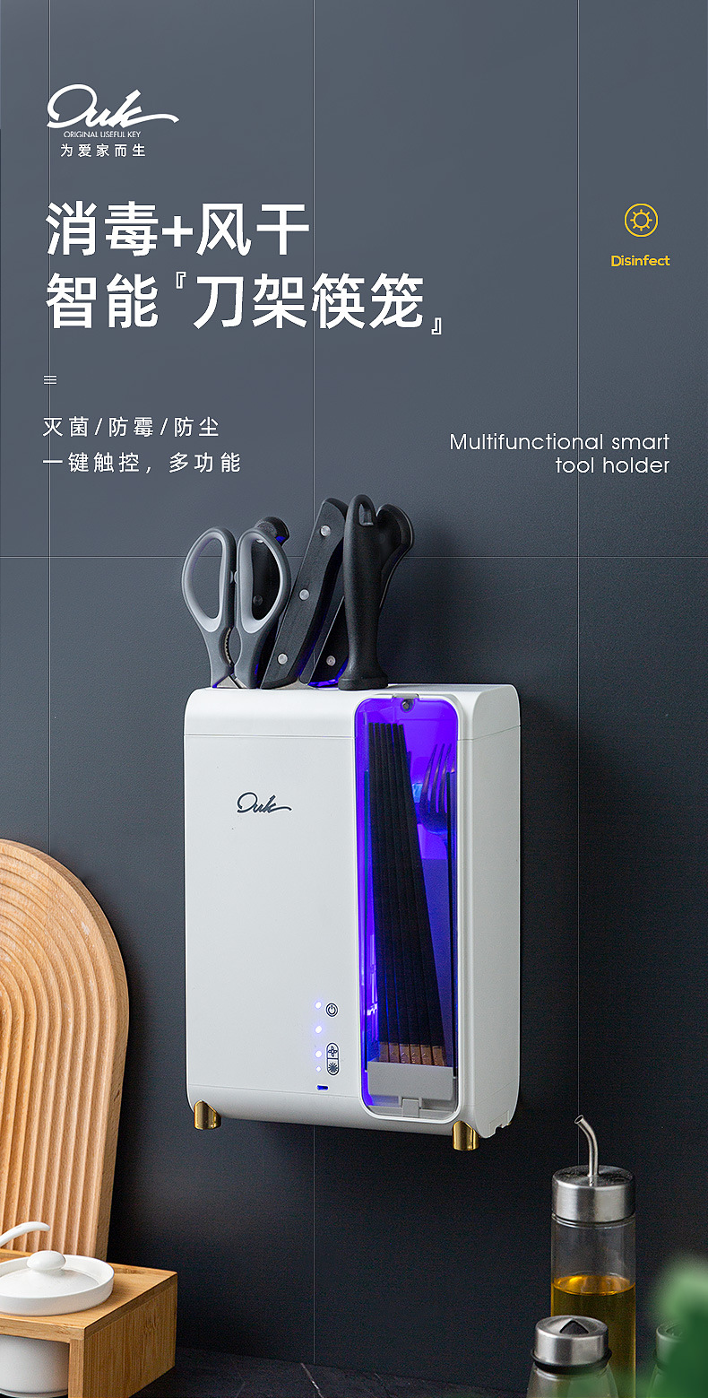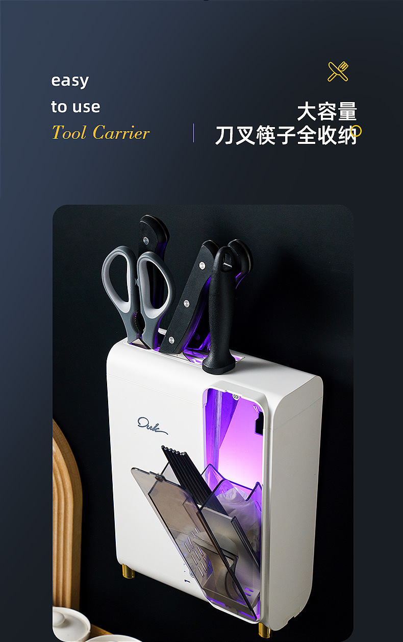 Ouyouke 지능형 나이프 홀더 자외선 소독 나이프 홀더 가정용 수납 랙 주방 다기능 통합 건조 젓가락