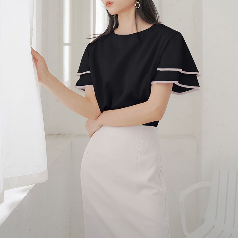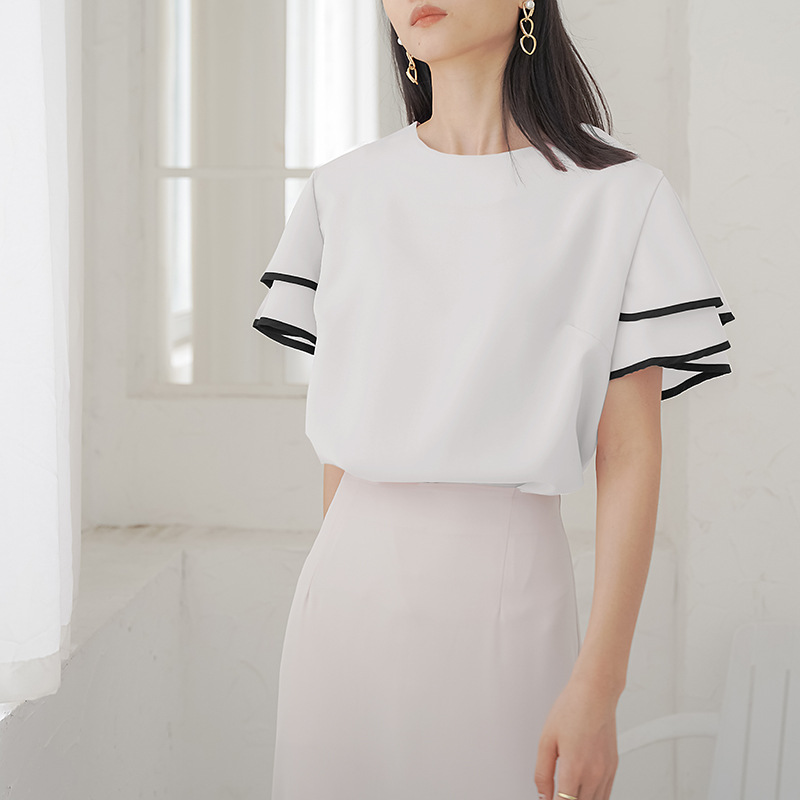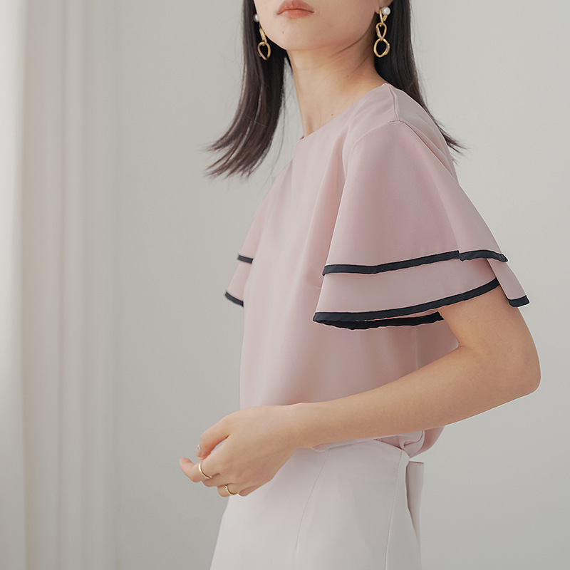 롯데 새로운 리얼 샷 3 색 연잎 슬리브 쉬폰 셔츠 여성용 신선한 스타일 우아한 느슨한 매우 간단한 스타일 블라우스스토어 가기