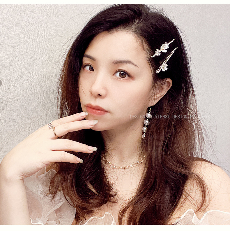 요정 부드러운 꽃 머리핀 요정 진주 머리핀 절묘한 앞머리 클립 한 단어 클립 깨진 헤어 사이드 클립 헤어 액세서리