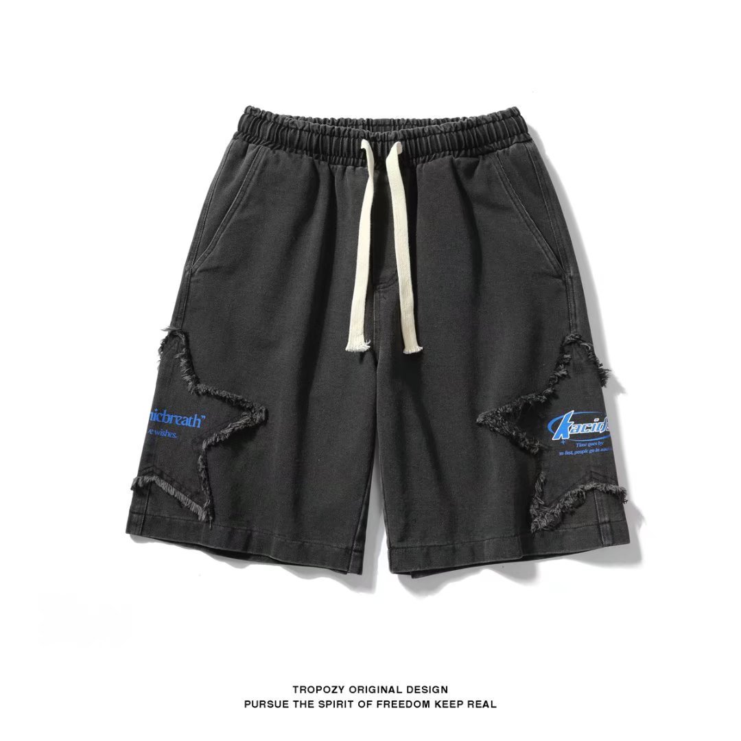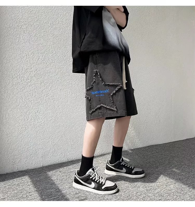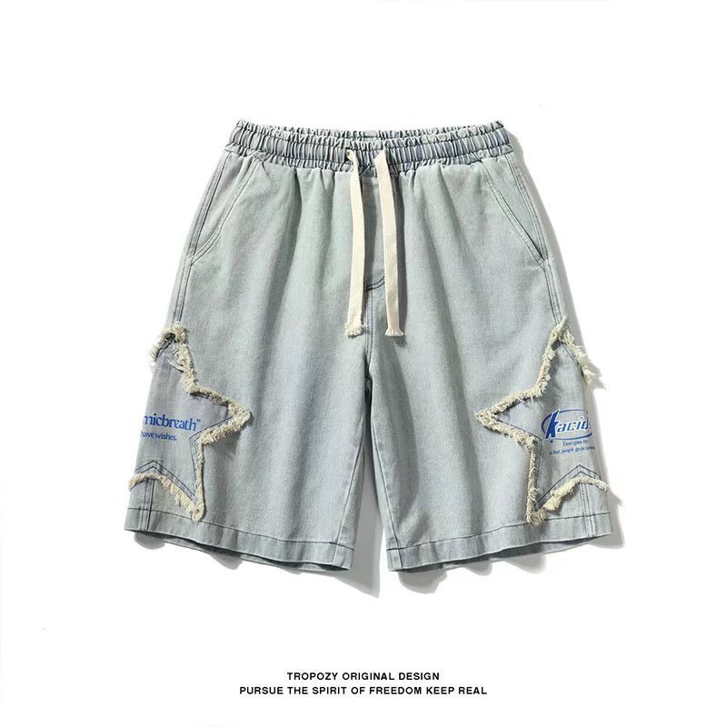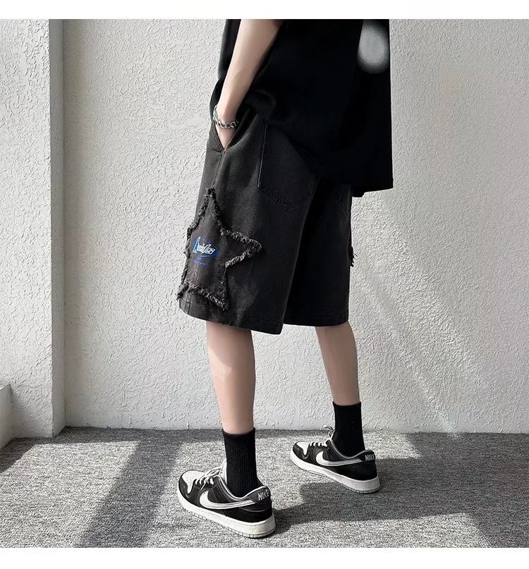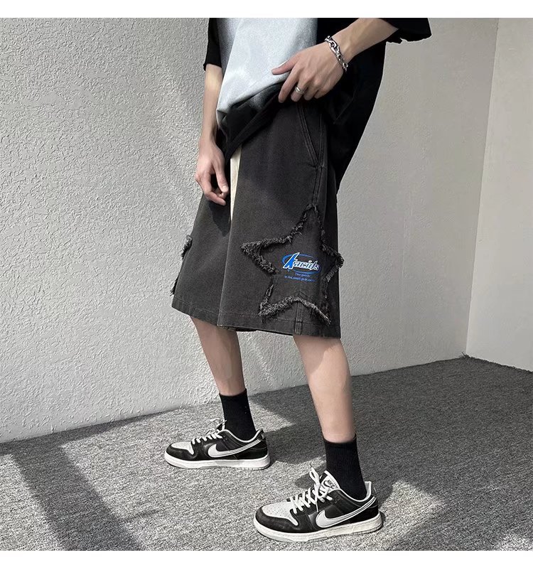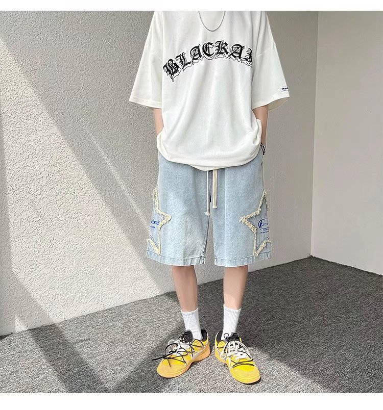 대외 무역 데님 바지 남자의 여름 얇은 느슨한 한국 스타일 유행 홍콩 스타일 하이 스트리트 스포츠 바지 모든 일치스토어 가기