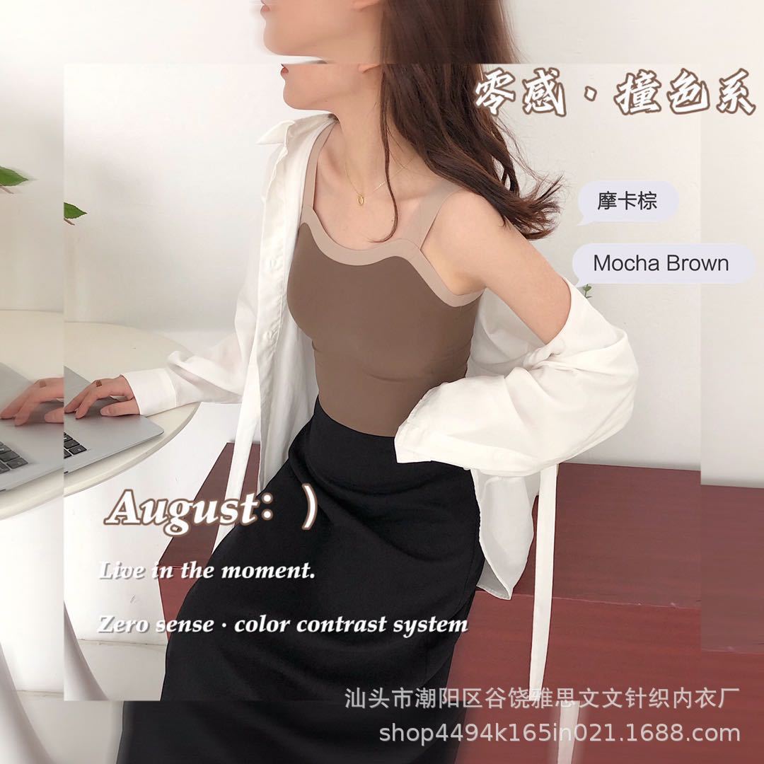 대조 색상 알몸 캐미솔 여성의 내부 모양 짧은 가슴 패드 착용 속옷 섹시한 아름다운 등 겉옷 내부 모양의 튜브 탑스토어 가기