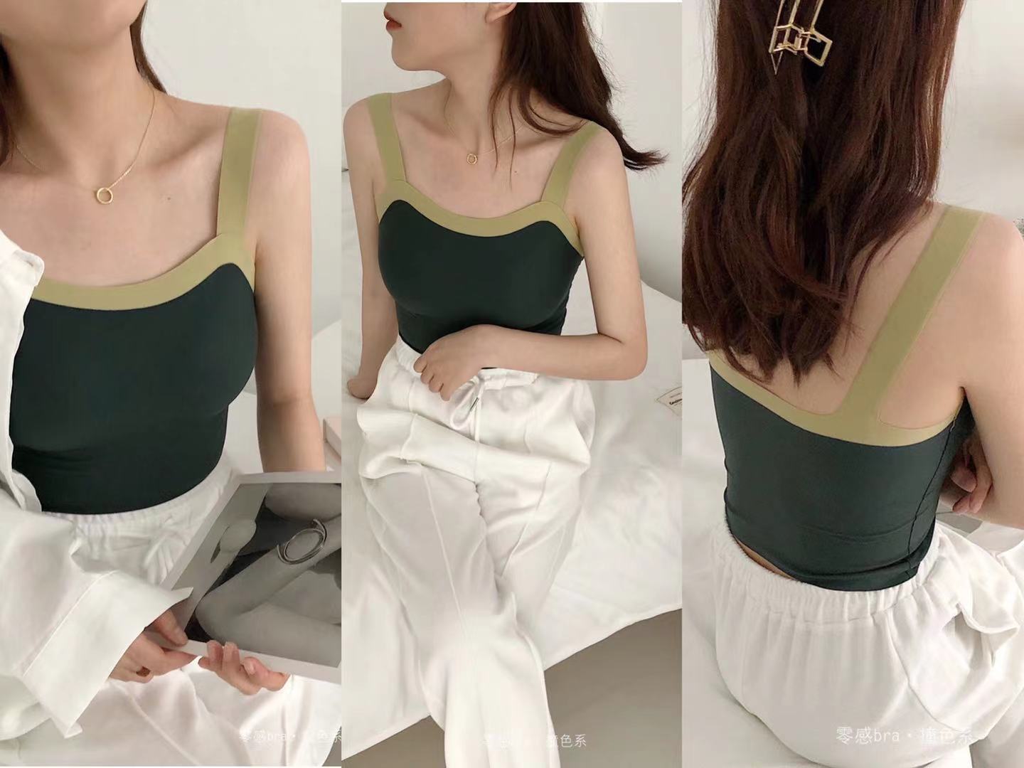 대조 색상 알몸 캐미솔 여성의 내부 모양 짧은 가슴 패드 착용 속옷 섹시한 아름다운 등 겉옷 내부 모양의 튜브 탑