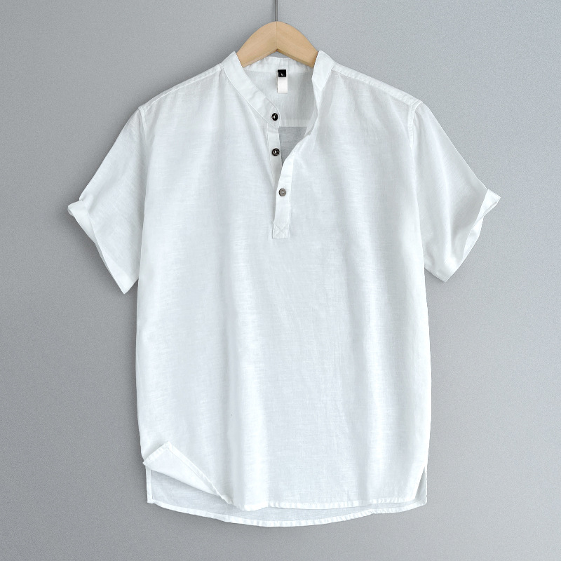 23T09 고급 면 및 린넨 반팔 티셔츠 남성용 폴로 셔츠 린넨 남성용 중국 스타일 스탠드 칼라 탑 여름 얇은 스타일스토어 가기