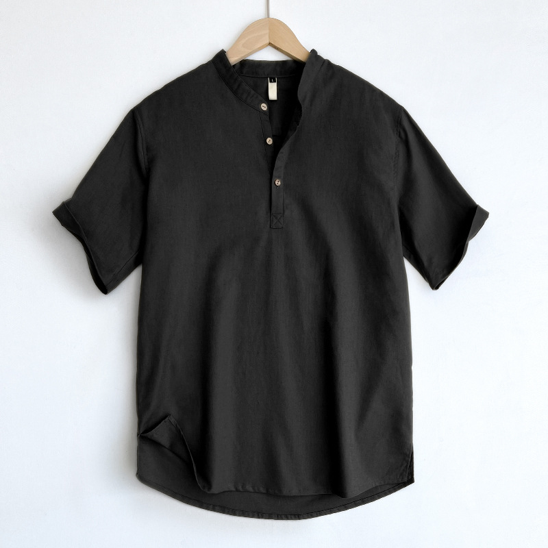 23T09 고급 면 및 린넨 반팔 티셔츠 남성용 폴로 셔츠 린넨 남성용 중국 스타일 스탠드 칼라 탑 여름 얇은 스타일