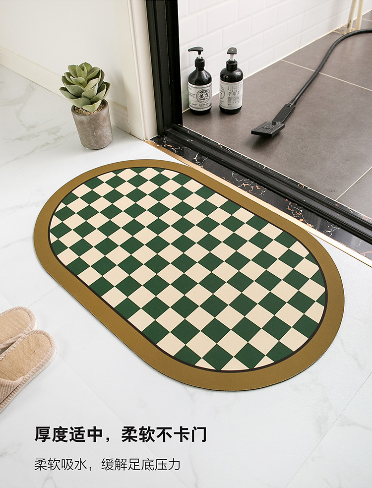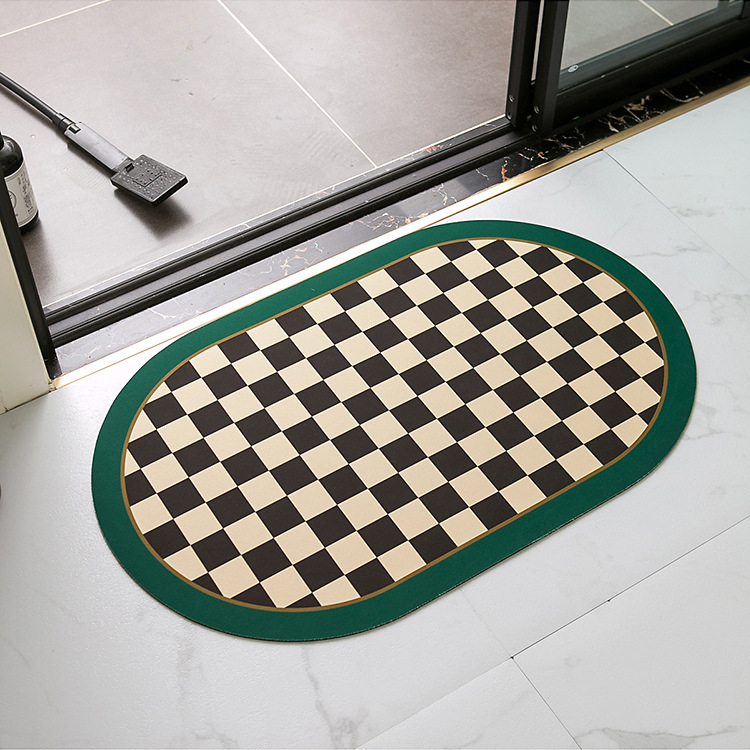 부드러운 diatom 진흙 체스 보드 그리드 흡수성 미끄럼 방지 바닥 매트 유럽식 기계 세탁기 먼지 흡수 바닥 매트 욕실 문스토어 가기