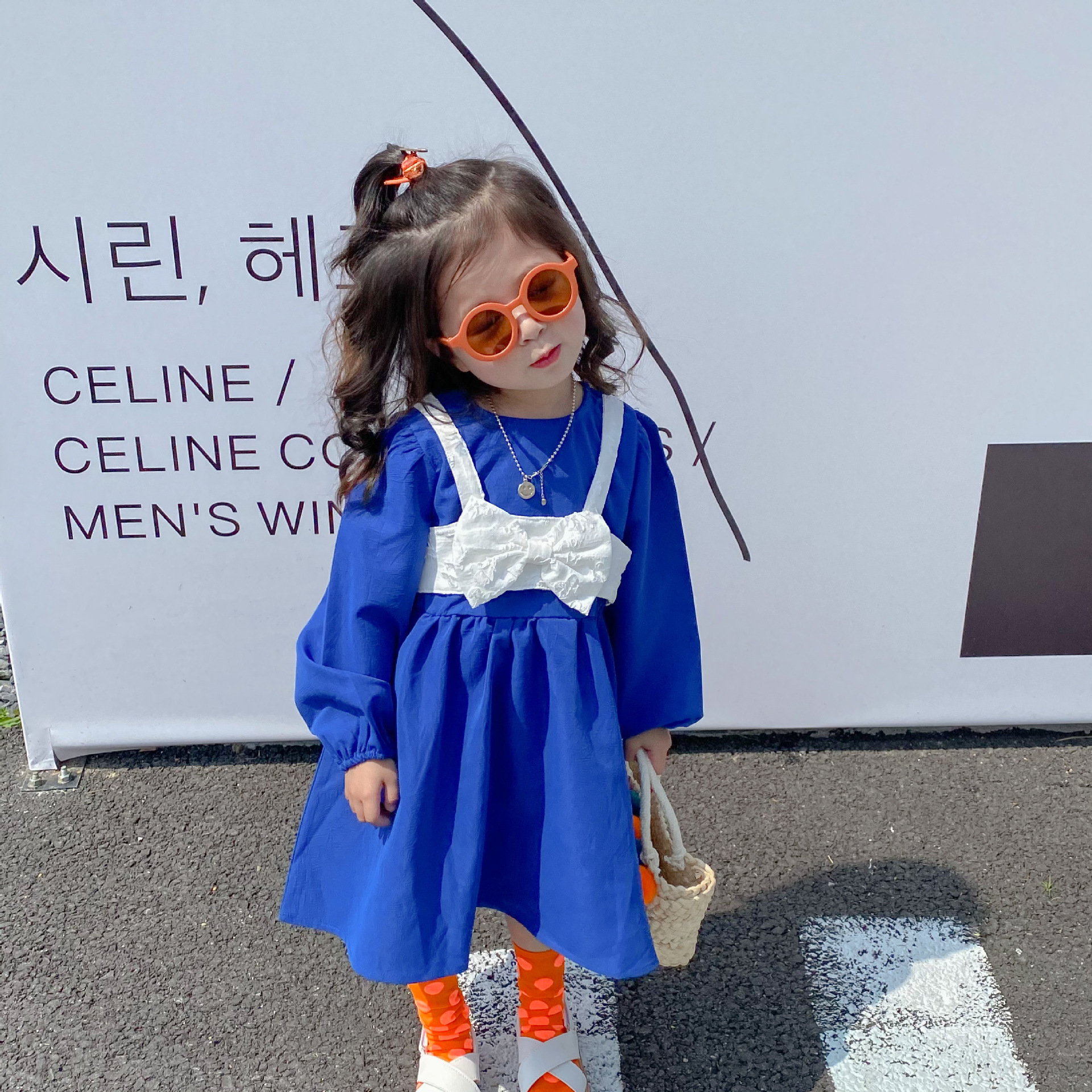 一款采用克莱因蓝chun棉连衣裙,蕾丝大蝴蝶结设计,森系甜美!