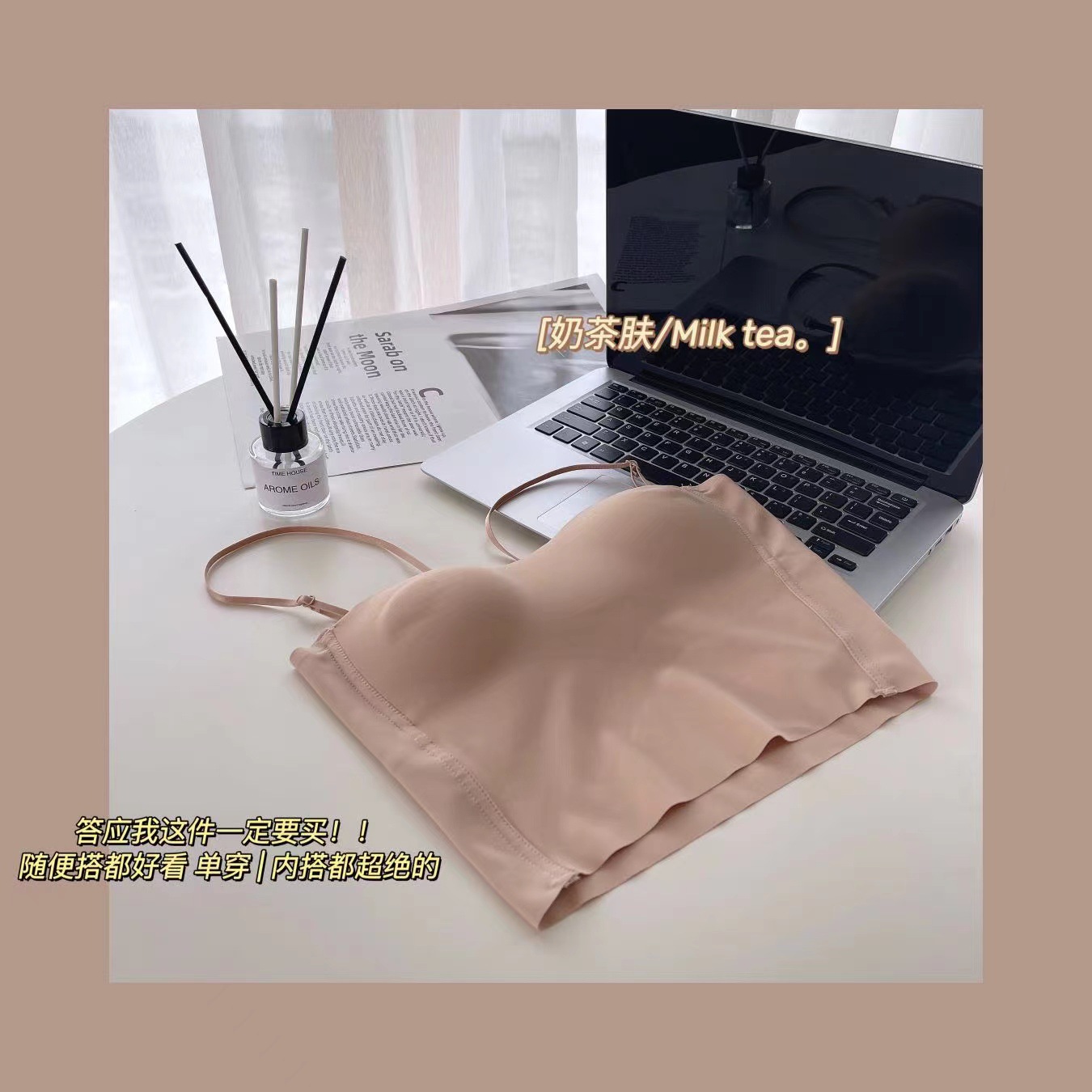 2885-1 고정형 얇은 컵, 흔적 없는 중간 길이 가슴 감싸는 튜브탑, 아름다운 등 캐미솔, 노출 방지 여성 속옷스토어 가기