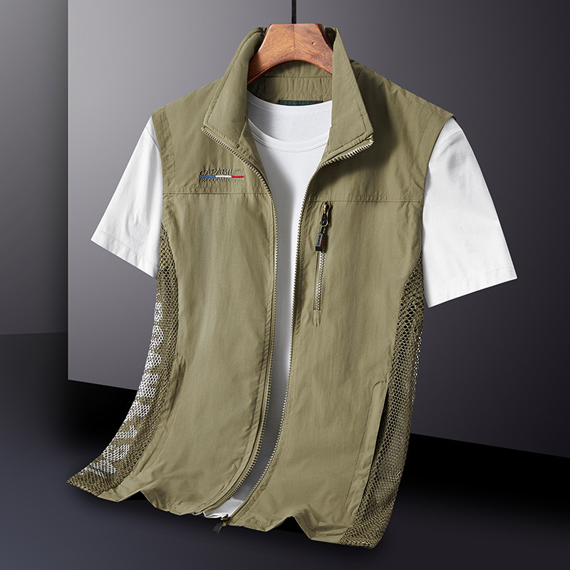 2022 봄과 가을 새로운 얇은 야외 여행 낚시 조끼 조끼 조끼 남성 로고