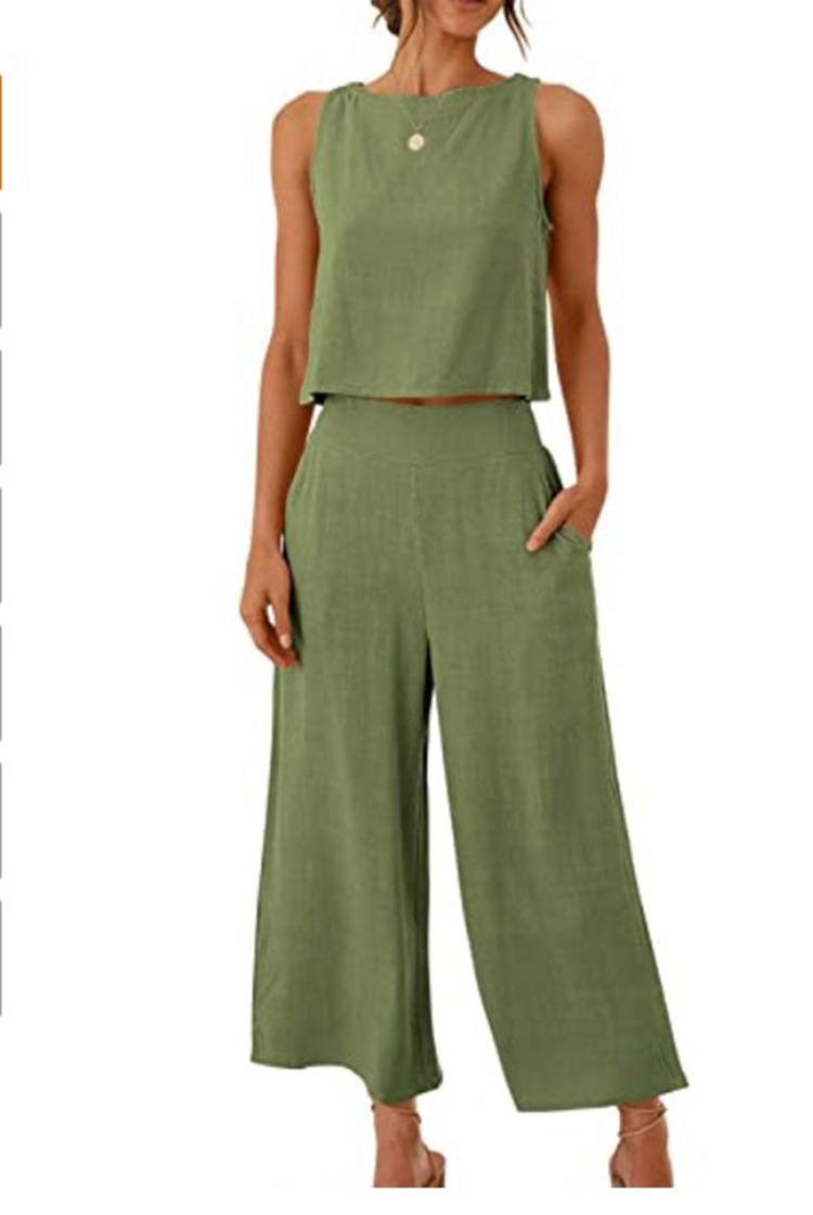 2022 여성 여름 2 피스 민소매 조끼 노출 버튼 탑 크롭 와이드 레그 팬츠 세트 포켓스토어 가기
