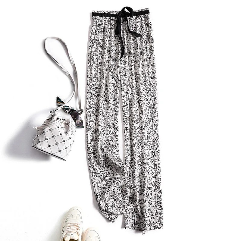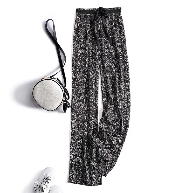 아이스 실크 와이드 레그 팬츠 여성 여름 아마존 재팬 크로스 보더 새로운 주름 없는 드레이프 루즈한 캐주얼 스트레이트 팬츠스토어 가기