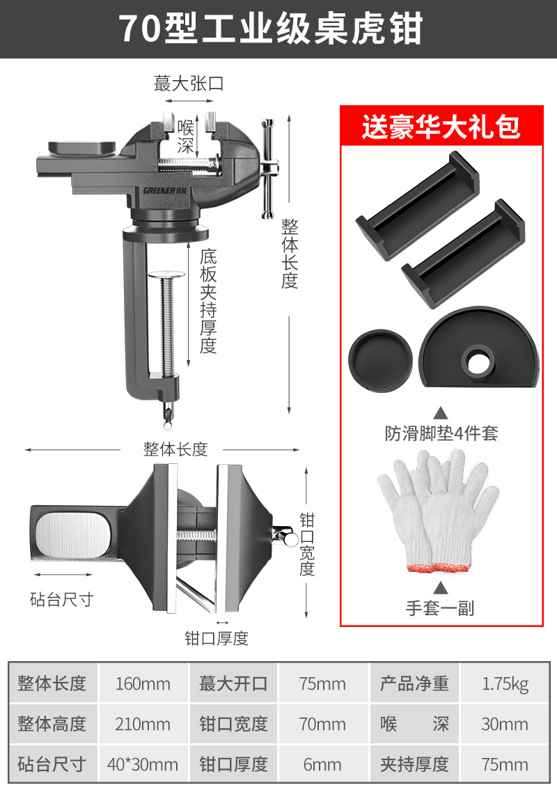 • 유형 70 프로페셔널 테이블 바이스 + 디럭스 기프트 팩