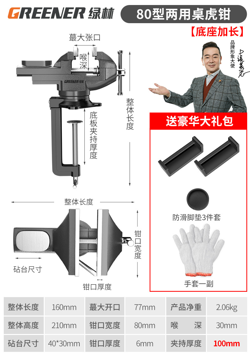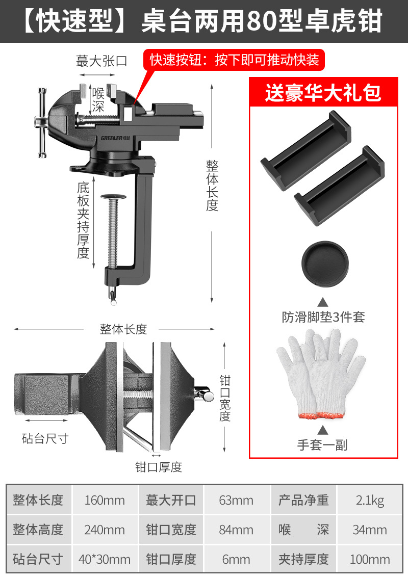 • [베이스 연장-테이블 및 테이블 이중 사용] 80 프로페셔널 테이블 바이스 + 다기능 집게 + 미끄럼 방지 패드 + 장갑
