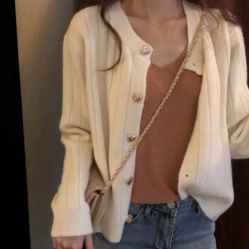 2022 초가을 새로운 빨간색 카디건 스웨터 여성 한국 스타일 러브 버튼 스위트 루즈 스웨터 재킷스토어 가기