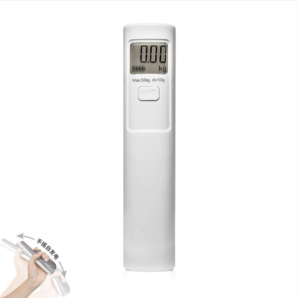 새로운 디자인의 핸드 크랭크 자가 생성 휴대용 수하물 스케일 50kg 배터리 프리 전자 저울 야외 여행 휴대용 저울