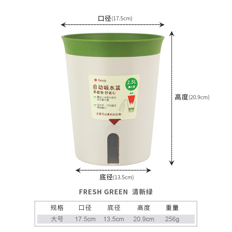 게으른 남자 자동 흡수 화분 대형 중형 소형 간단한 원형 화분 가정용 플라스틱 수경 녹색 냄비 용기