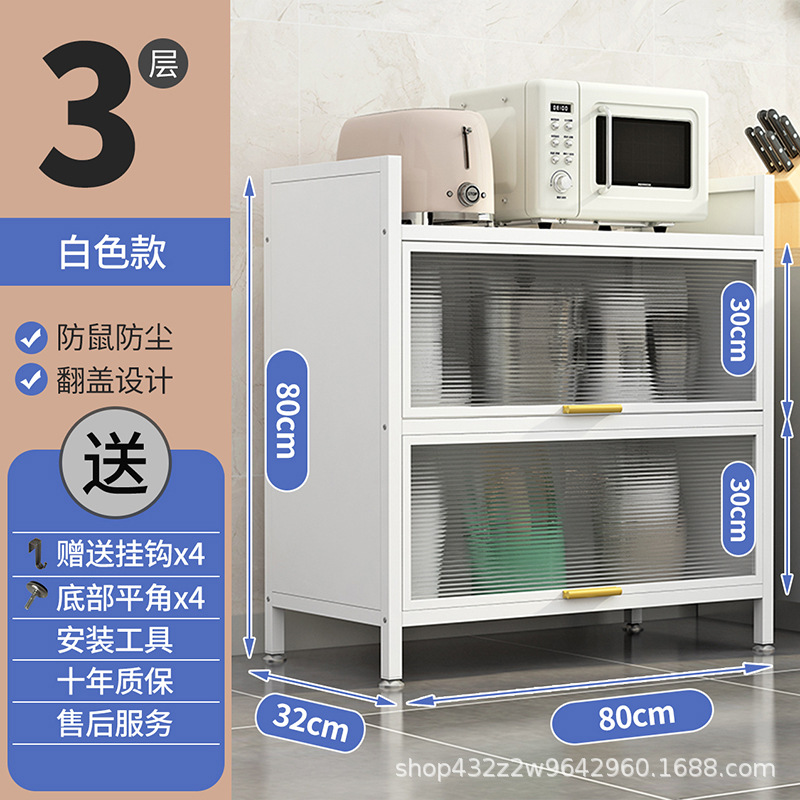 주방 수납 랙 바닥 스탠딩 다층 방진 수납 캐비닛 냄비 가전 스낵 및 식사 측면 수납 수납용 도어
