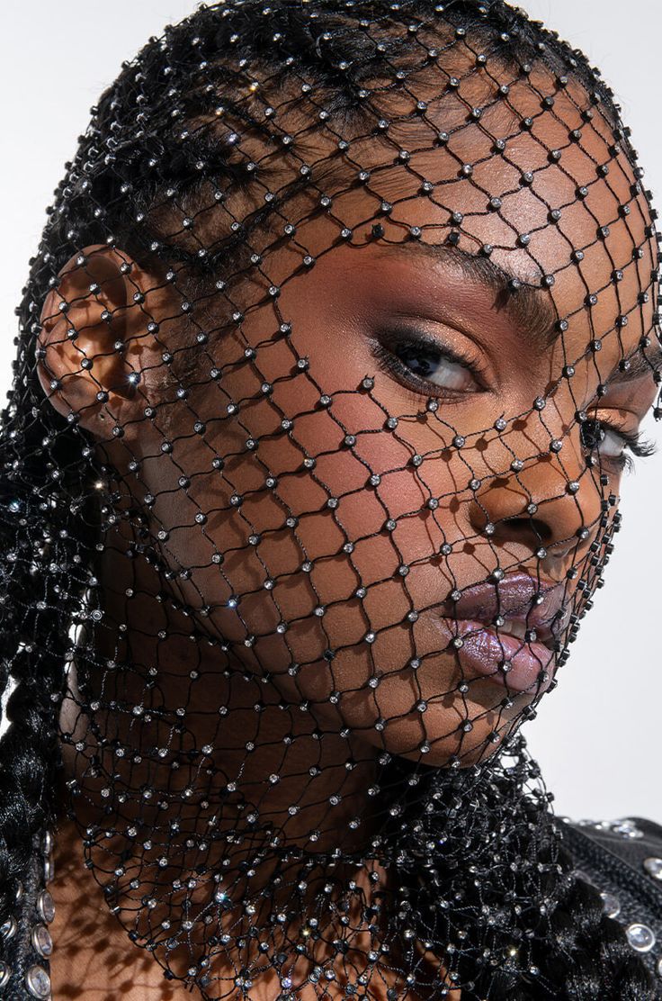 아마존 국경 유럽 및 미국 뜨거운 판매 액세서리 라인 석 탄성 메쉬 후드 휴일 카니발 플래시 다이아몬드 마스크 여성스토어 가기