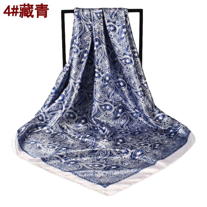 봄과 여름 패션 페이즐리 스카프 빈티지 캐슈 패턴 새틴 90 스퀘어 스카프 재고 도매스토어 가기