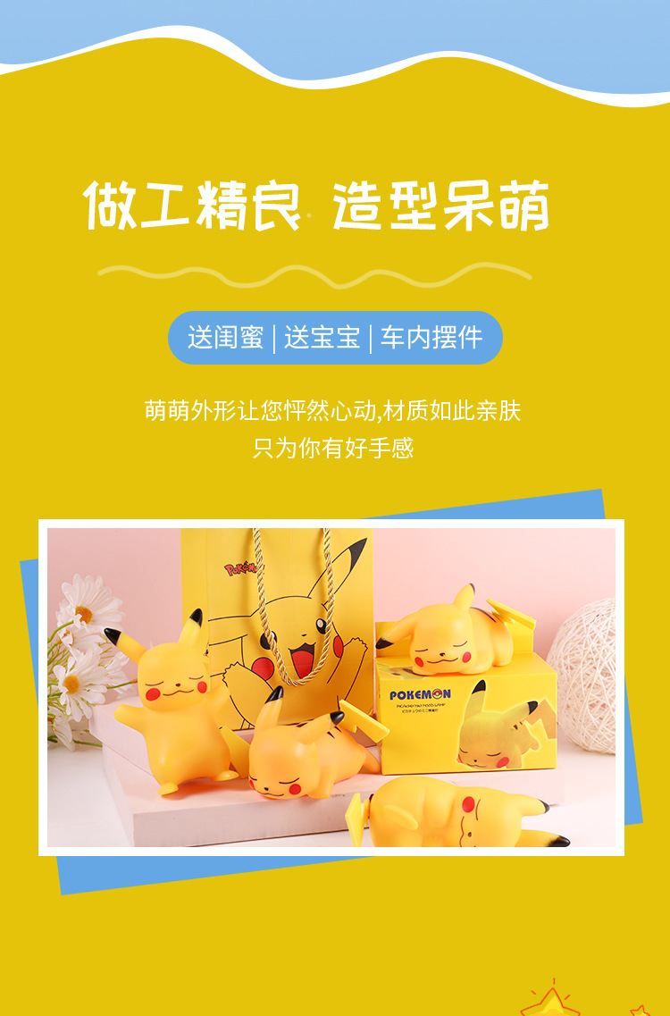 정품 피카추 야간 조명 엘프 귀여운 램프 침실 거실 장식품 선물 여성 공장 직접 판매 한국판스토어 가기