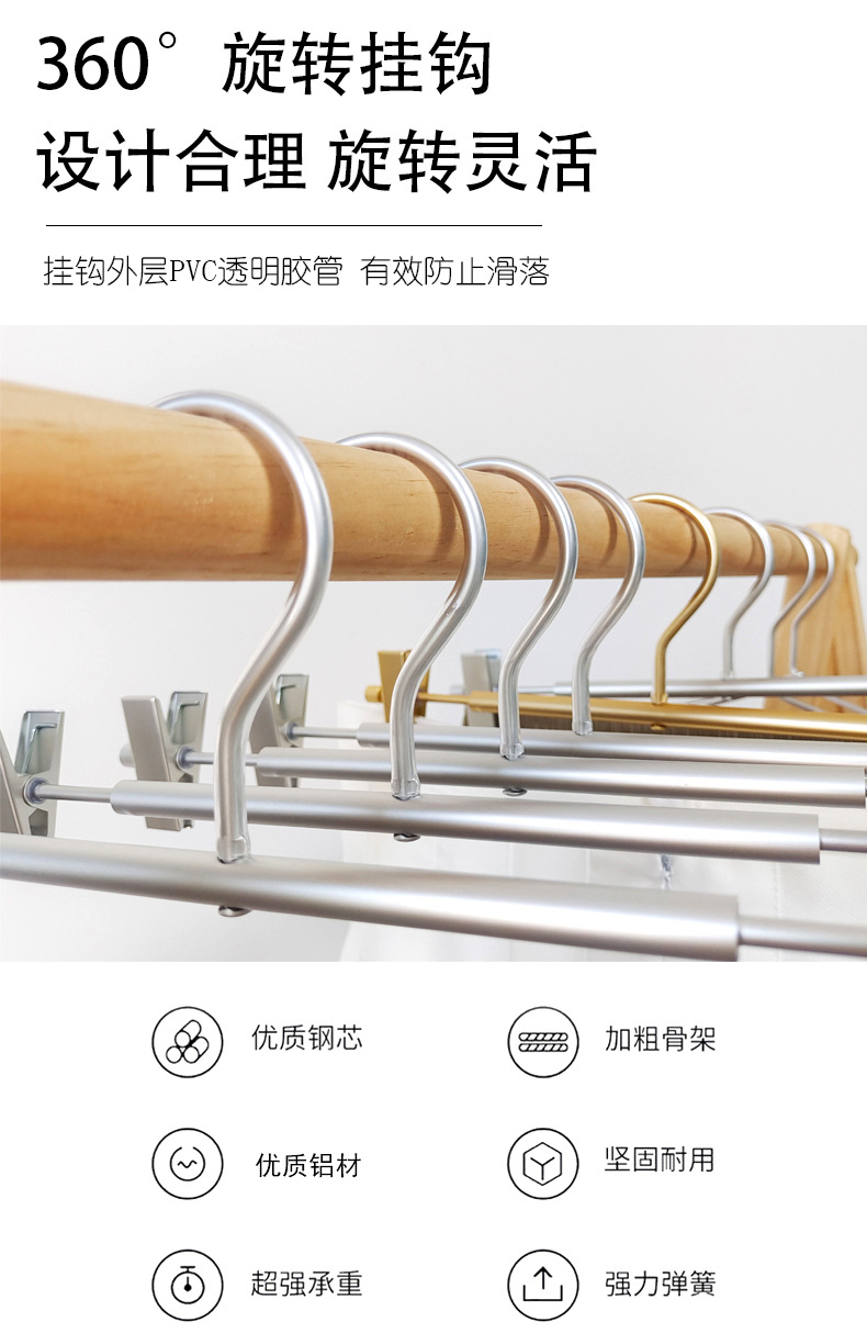 알루미늄 합금 바지 랙 원활한 미끄럼 방지 바지 클립 걸이 공간 알루미늄 가정용 건식 및 습식 건조 다기능 란제리 클립
