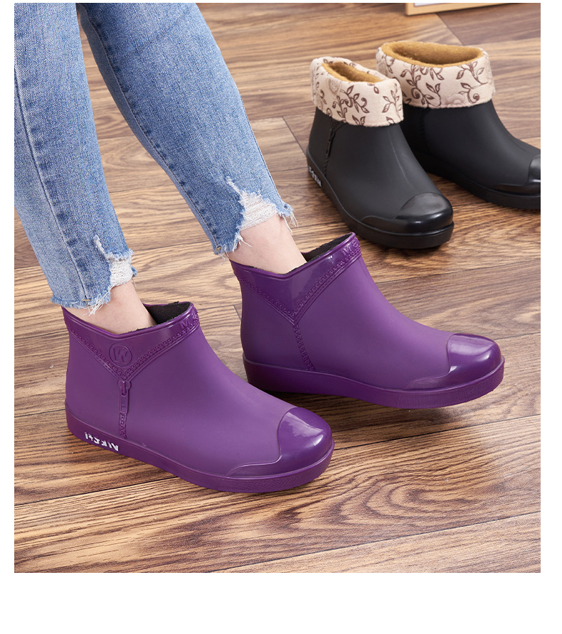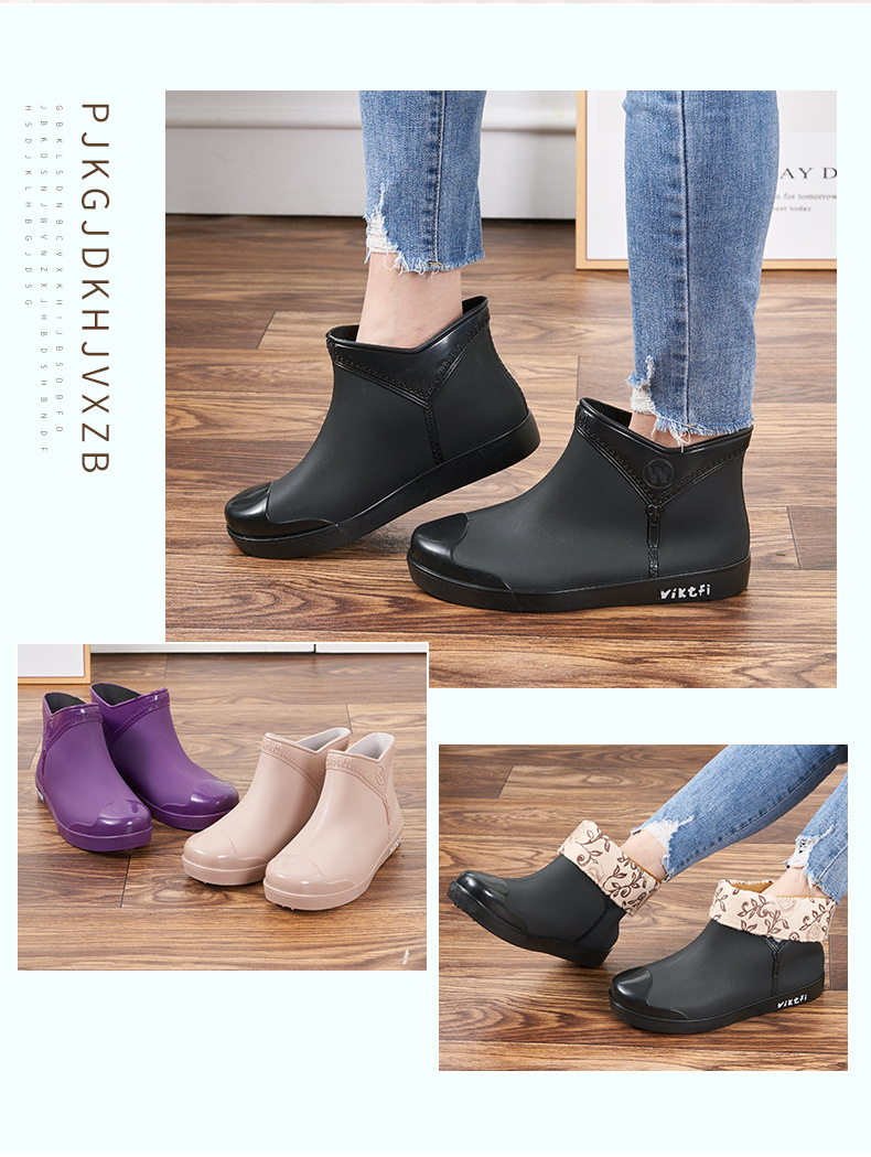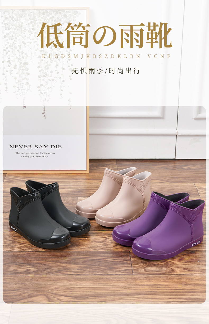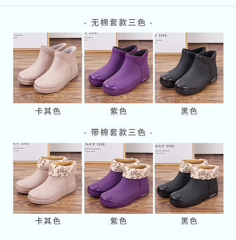 低筒保暖加绒雨靴低帮防水鞋女款厨房时尚成人短筒防滑浅口低帮靴