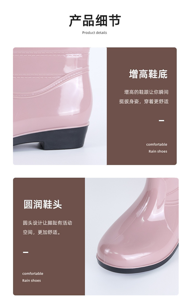 低跟时尚长筒雨靴女款防滑高筒水鞋厨房pvc女士雨鞋高帮女软胶鞋