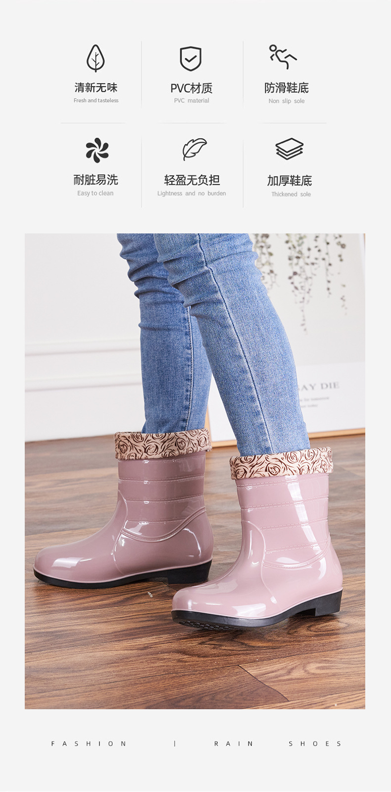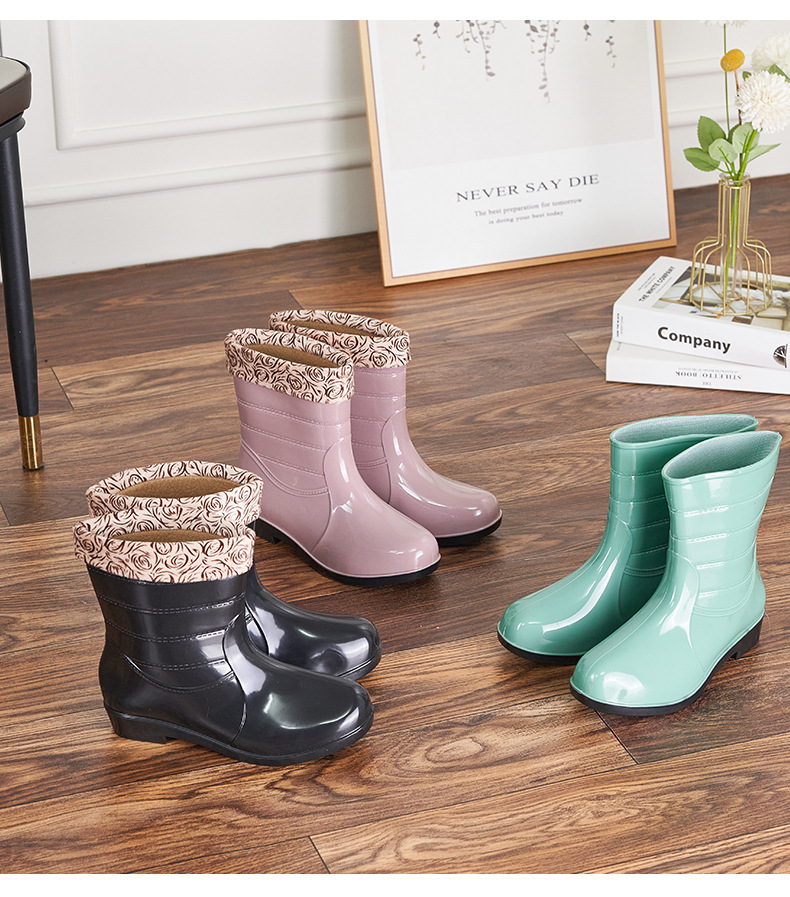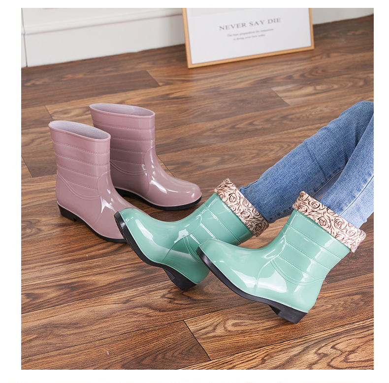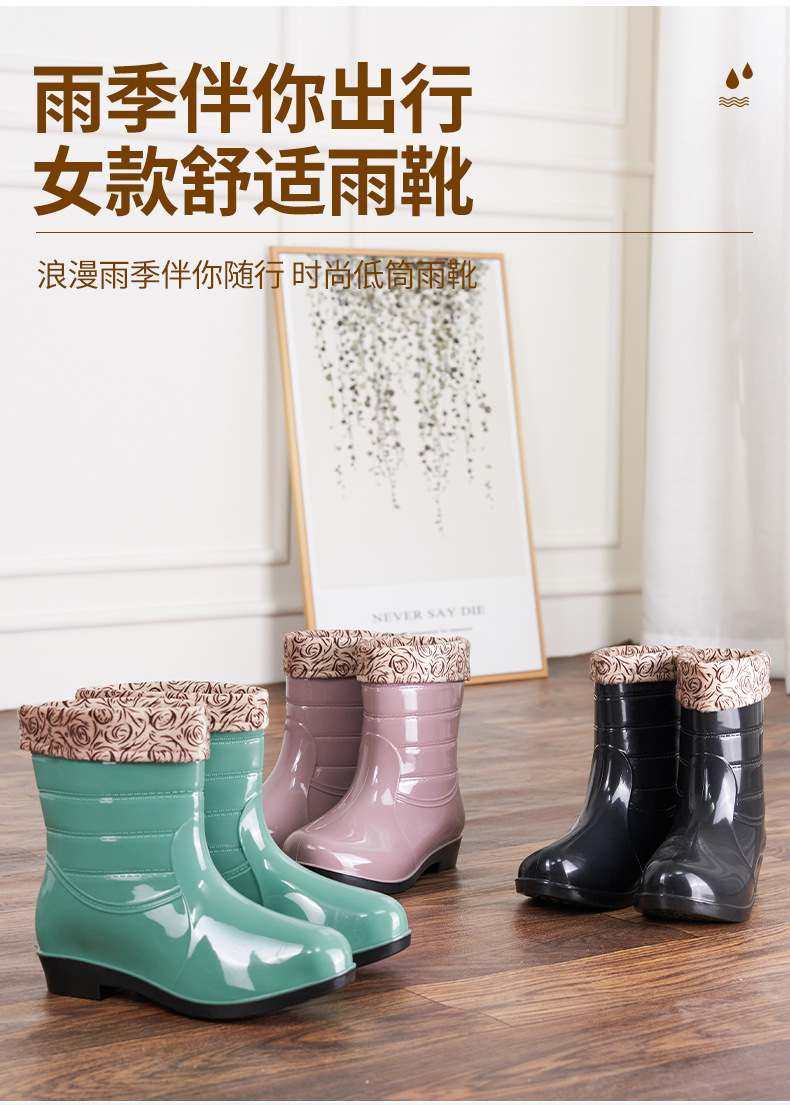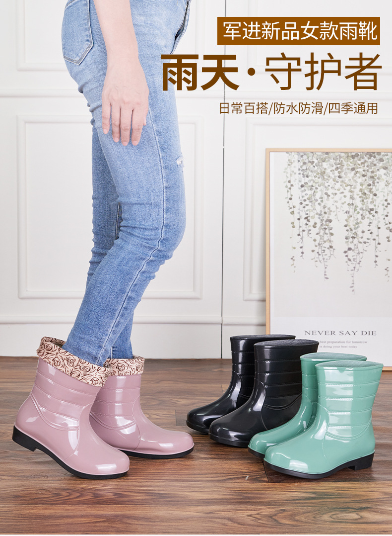中筒四季雨鞋女保暖专用塑料鞋中帮防滑水靴厨房加绒雨靴工作胶鞋