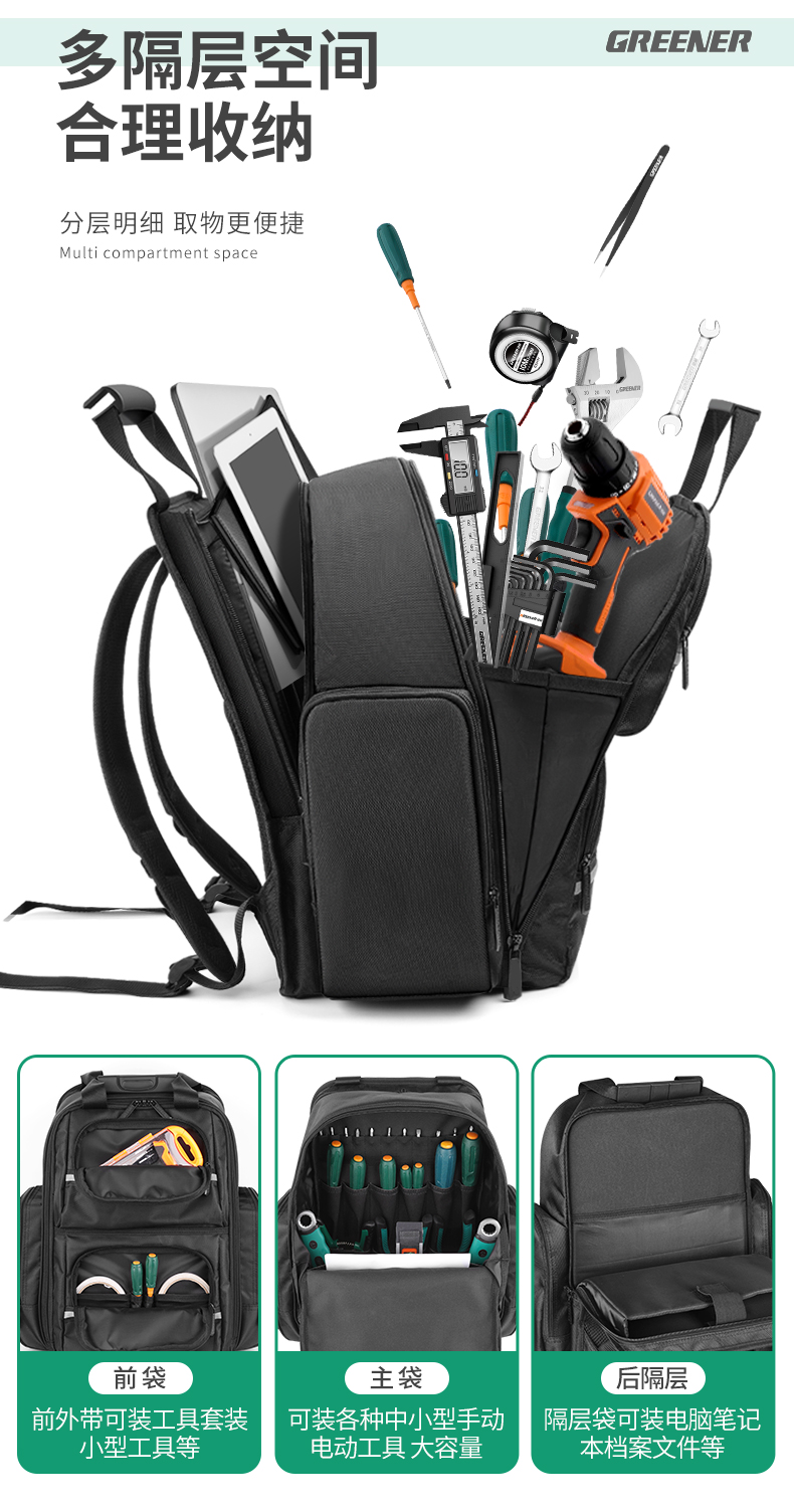 Greenwood 도구 키트 강력하고 튼튼한 전기 가방 캔버스 목공 두꺼운 보관 배낭 유지 보수 하드웨어스토어 가기