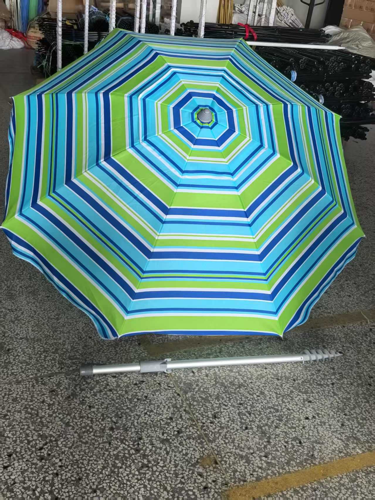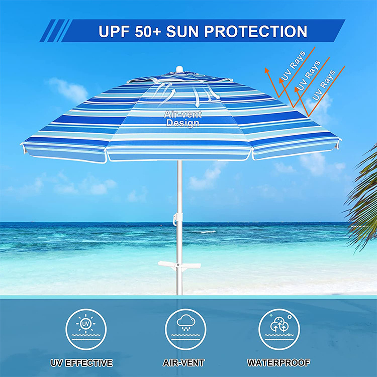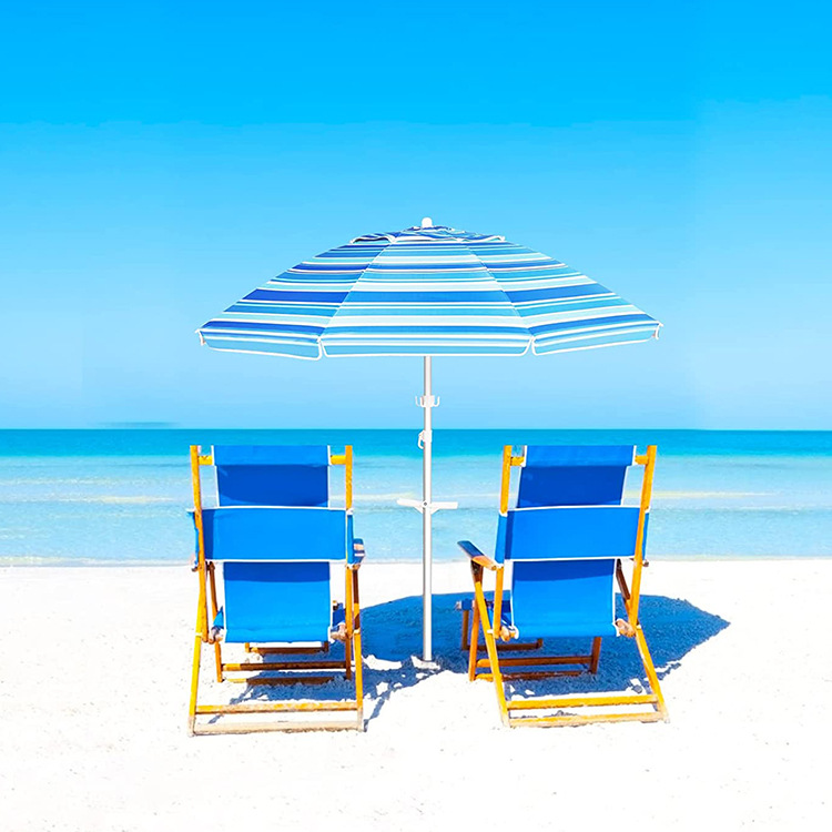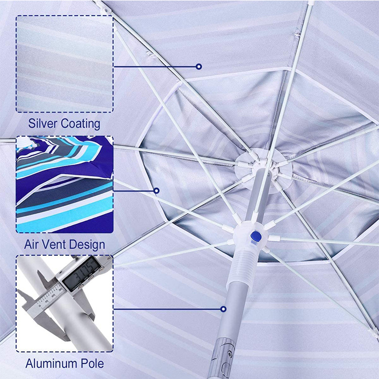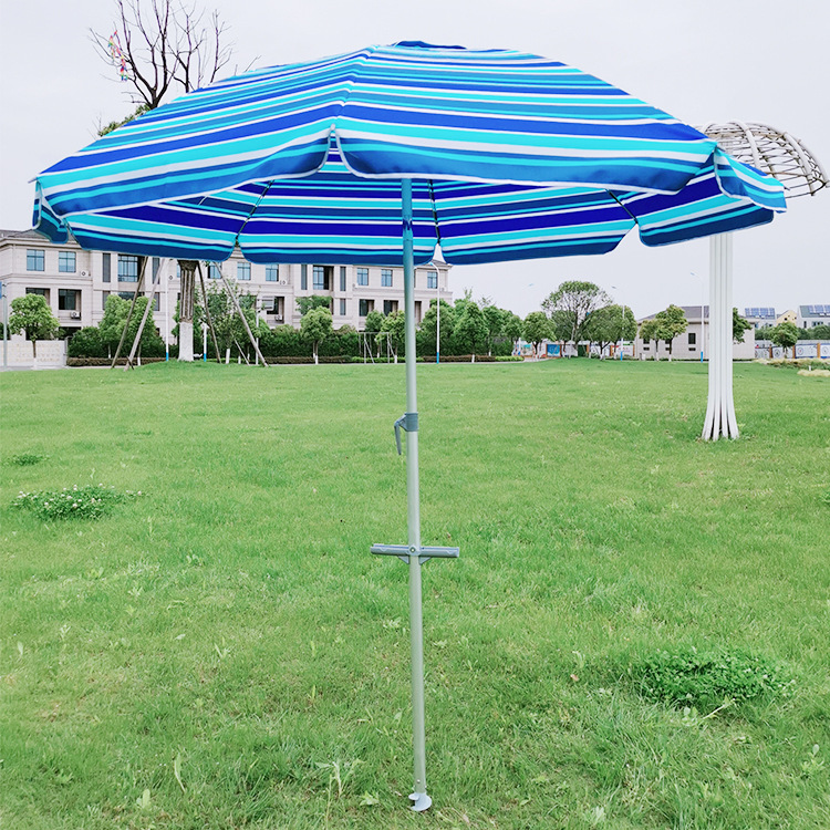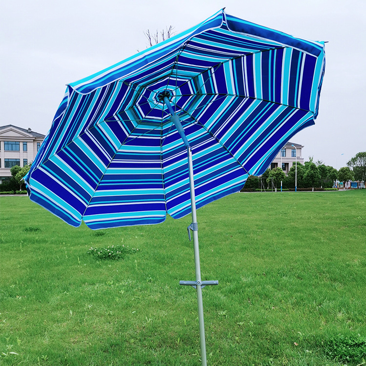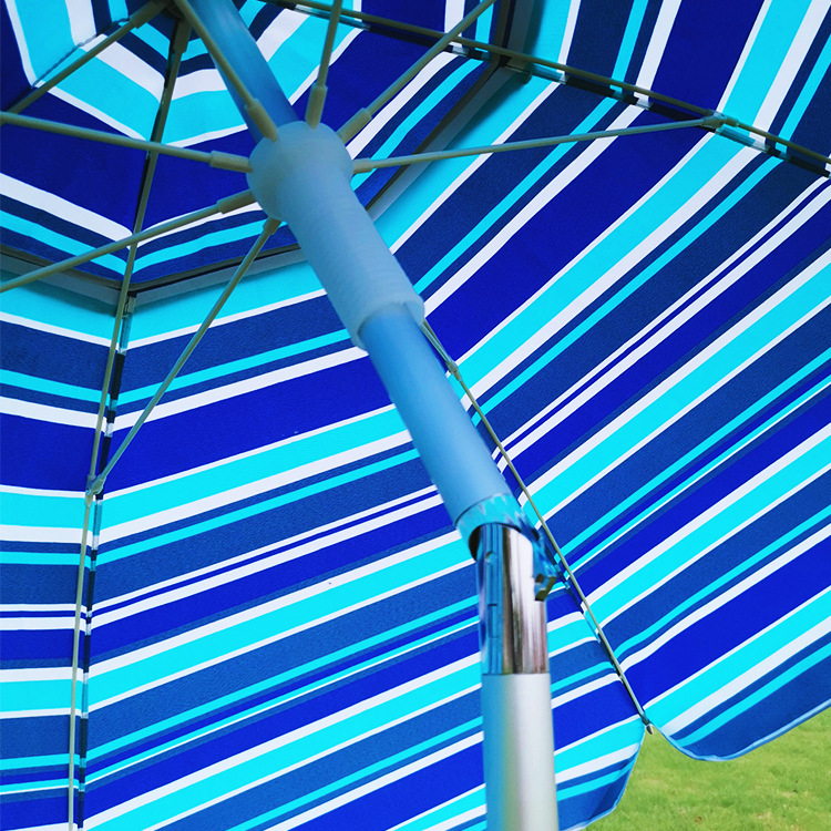 크로스보더 아마존 스트라이프 비치 파라솔, 알루미늄 폴, 렌치 포함, 이중 UV 차단 옥스포드 실버 테이프, 나사형 지지대