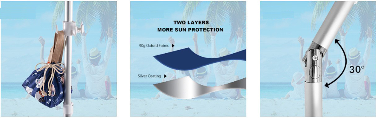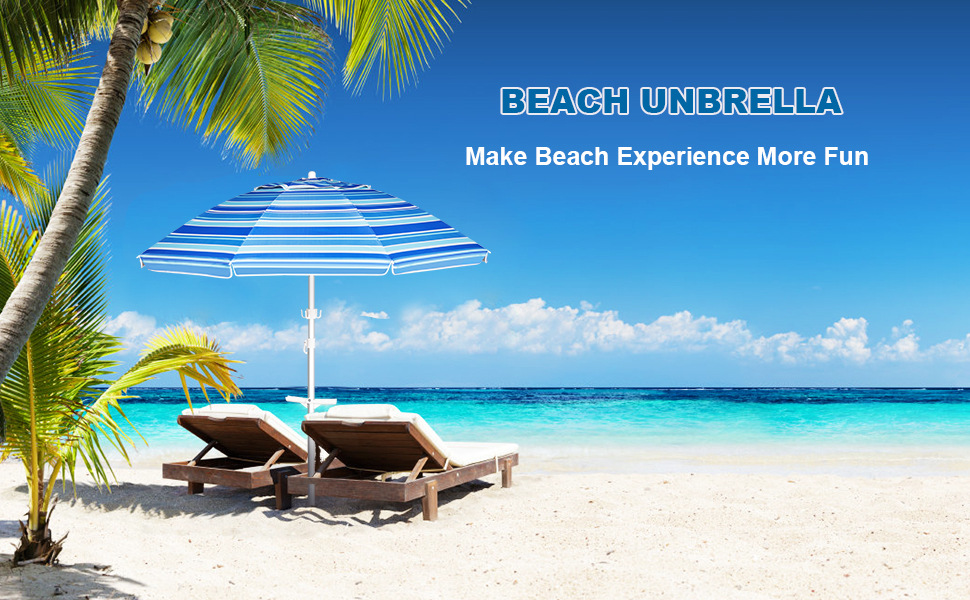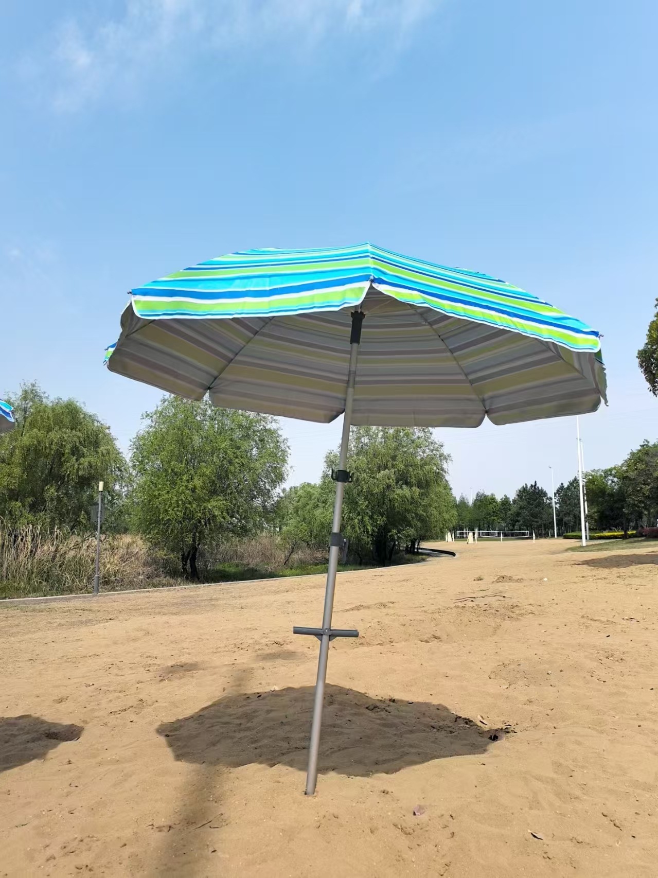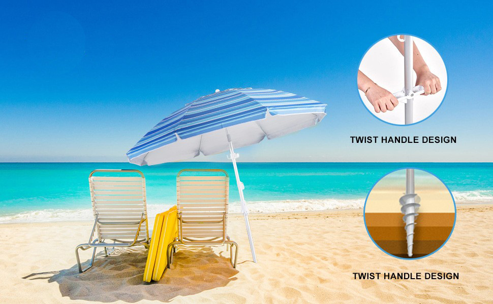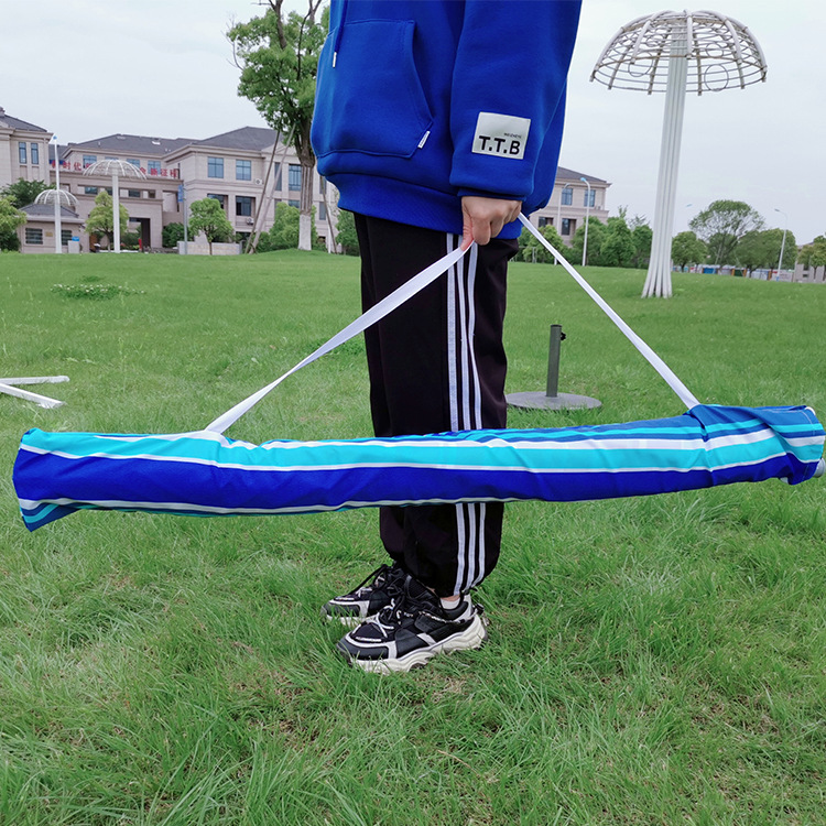 크로스보더 아마존 스트라이프 비치 파라솔, 알루미늄 폴, 렌치 포함, 이중 UV 차단 옥스포드 실버 테이프, 나사형 지지대
