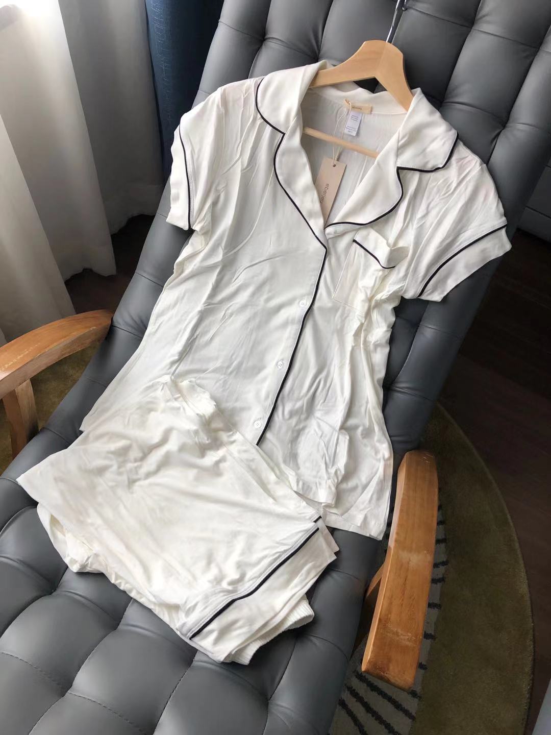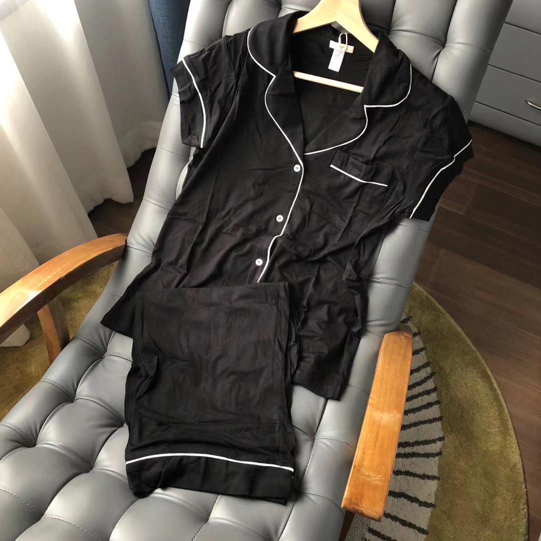 여름 아이스 실크 짧은 잠옷 세트 간단한 캐주얼 편안한 부드러운 여름 얇은 옷깃 캐주얼 홈웨어스토어 가기