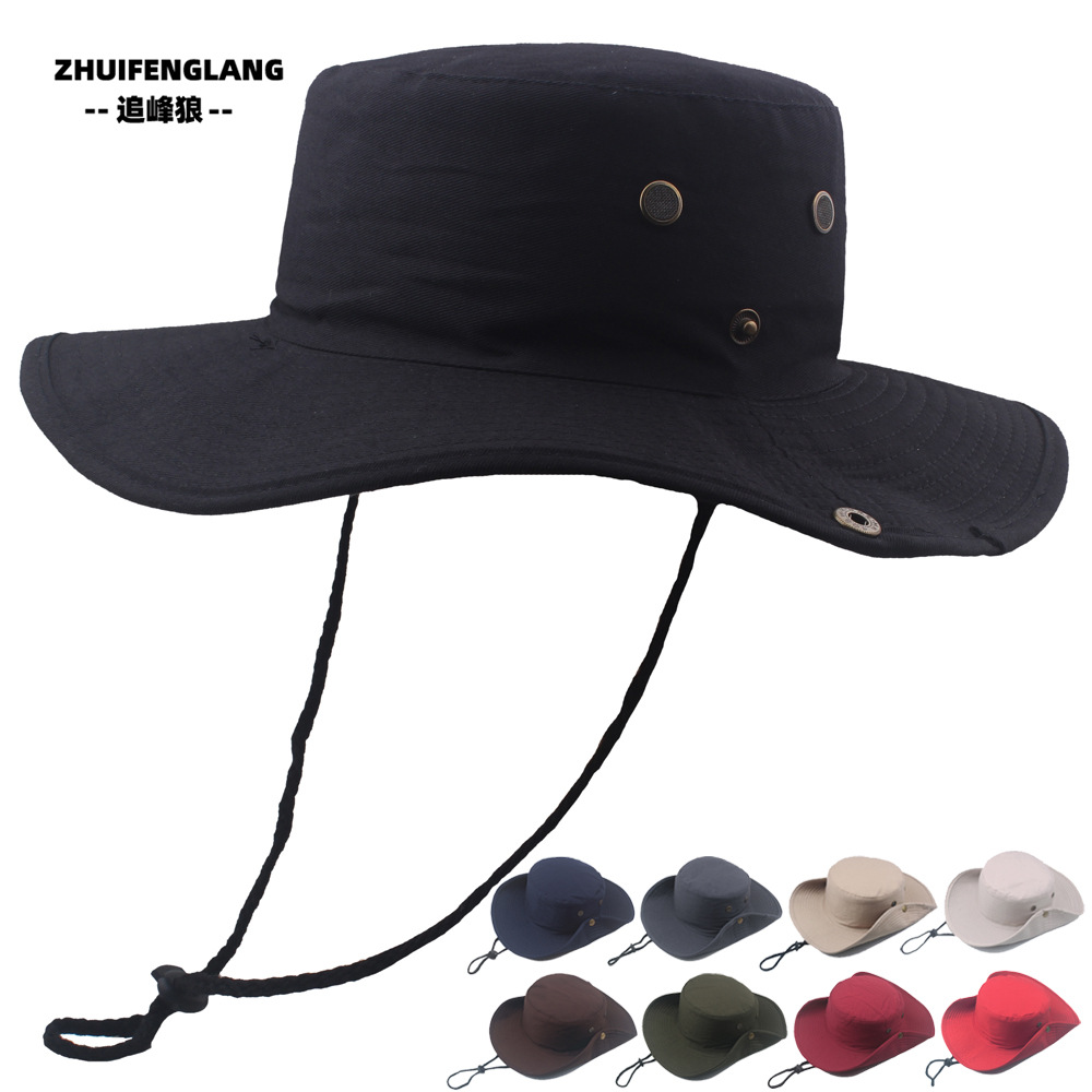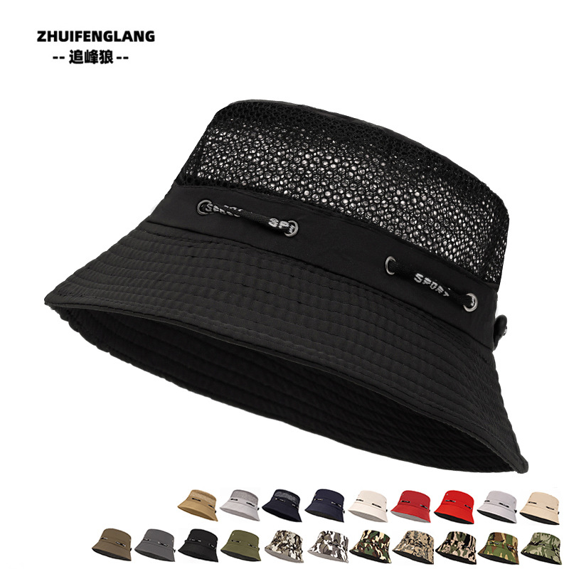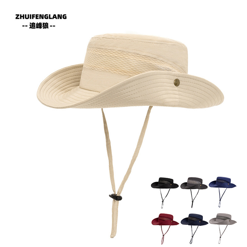서양 야외 낚시 모자 남자의 태양 보호 새로운 통기성 태양 모자 면화 메쉬 모자 등반 모자 등반 모자 어부 모자스토어 가기