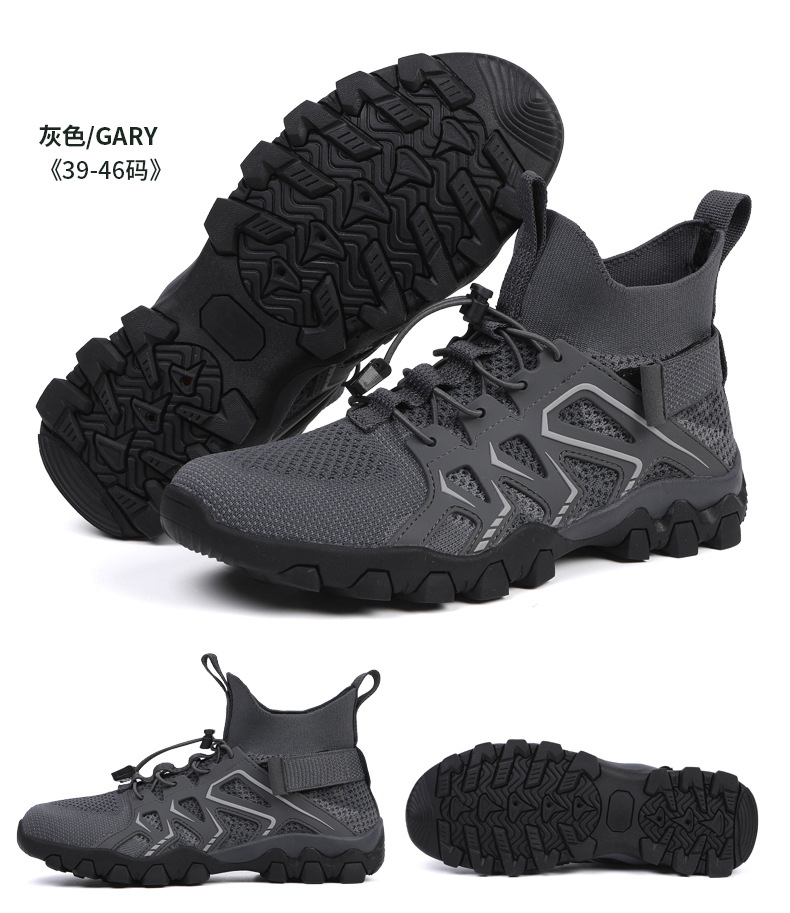 남자의 하이킹 신발 비행 짠 하이 탑 플러스 사이즈 추적 신발 남자의 여름 하이킹 신발 여자의 야외 수륙 양용 신발